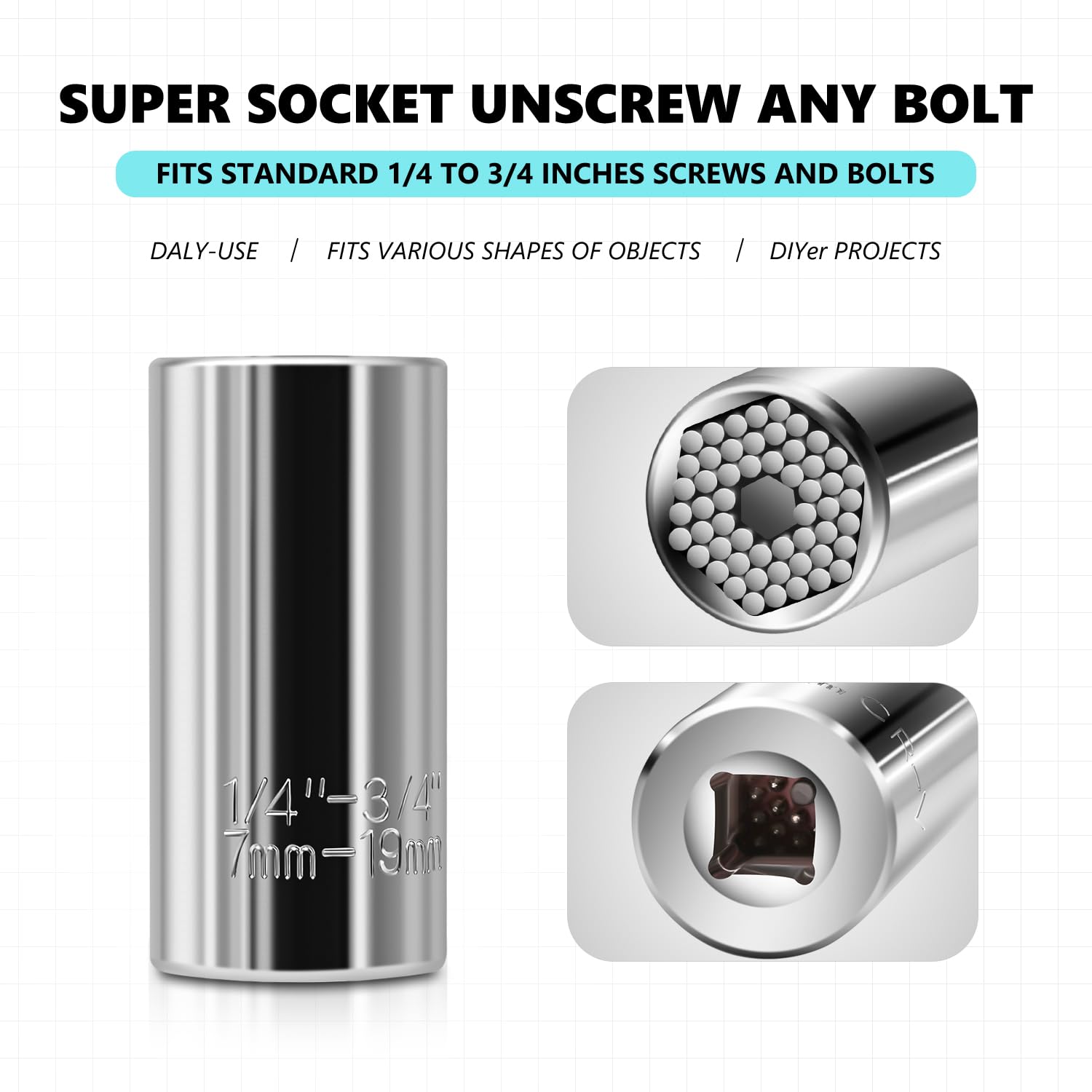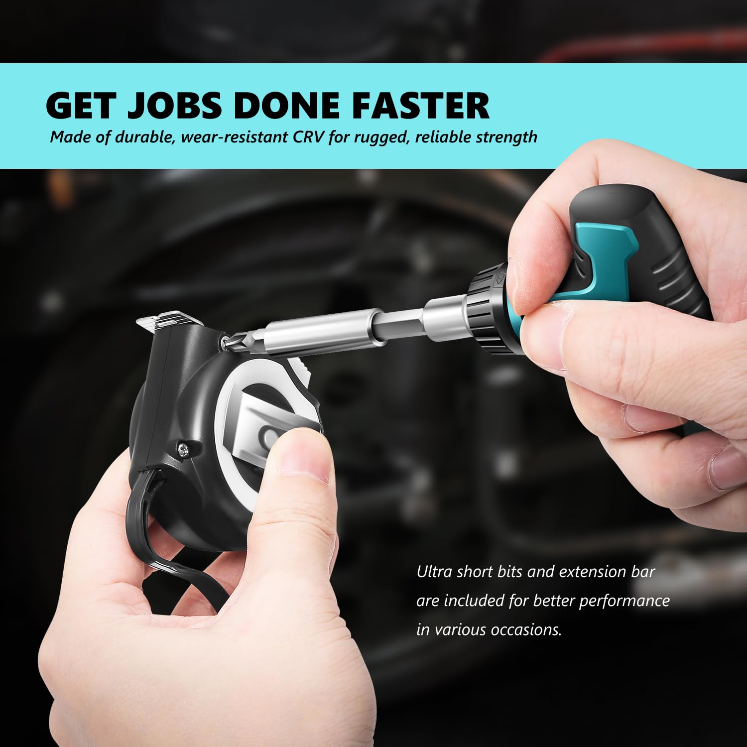 DNA MOTORING T-handle Screwdriver Set With Super Socket Fits Standard 1/4 to 3/4 Inches Screws and Bolts,15pcs CRV Bits, 19 In 1 Tool Set, Blue, Tools-00418