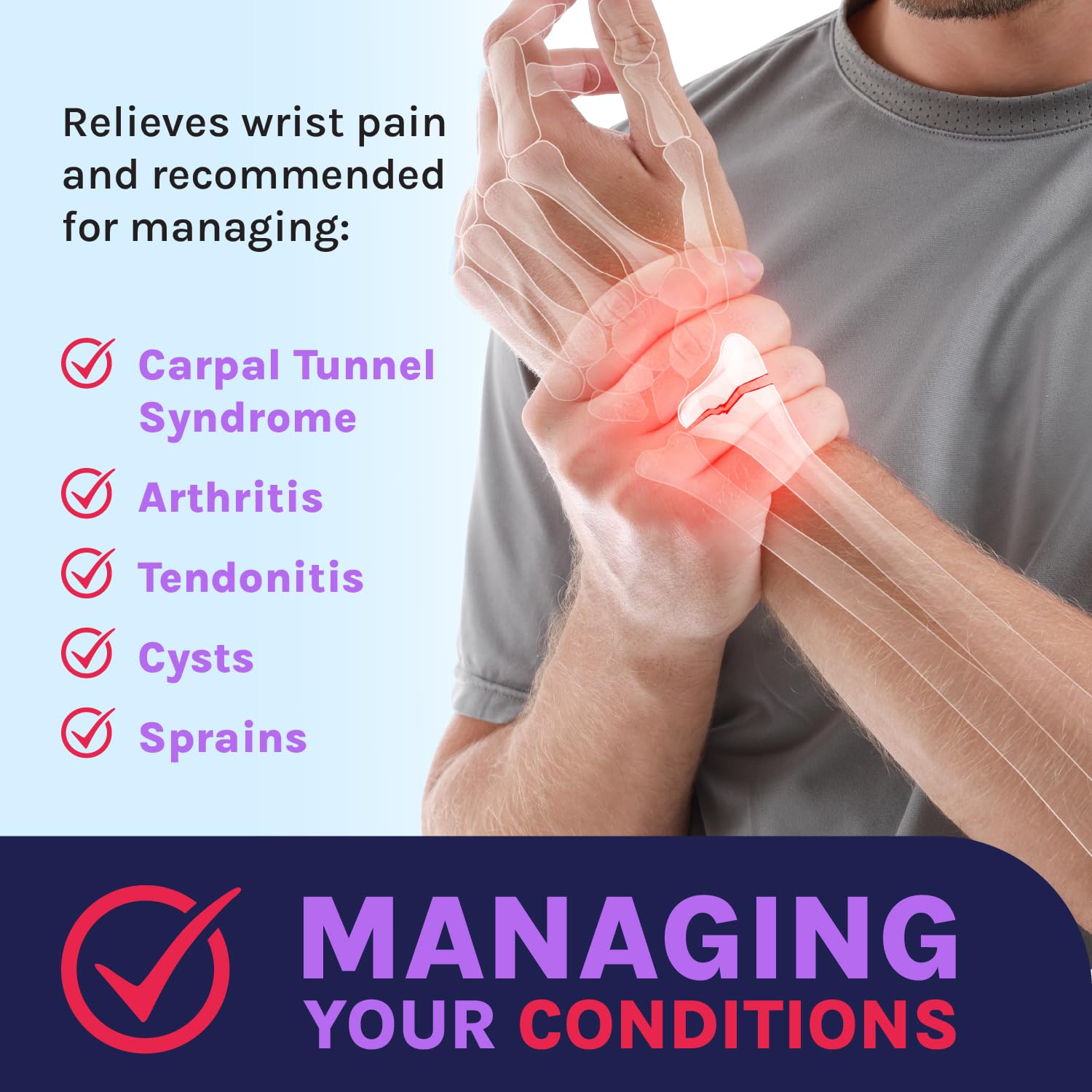 Doctor Developed Wrist Brace, Wrist Wraps for Carpal Tunnel Arthritis, Tendonitis, Hand Support, Ideal for Fitness, Weightlifting - Handbook Included (Wrist Brace 1 Pack)