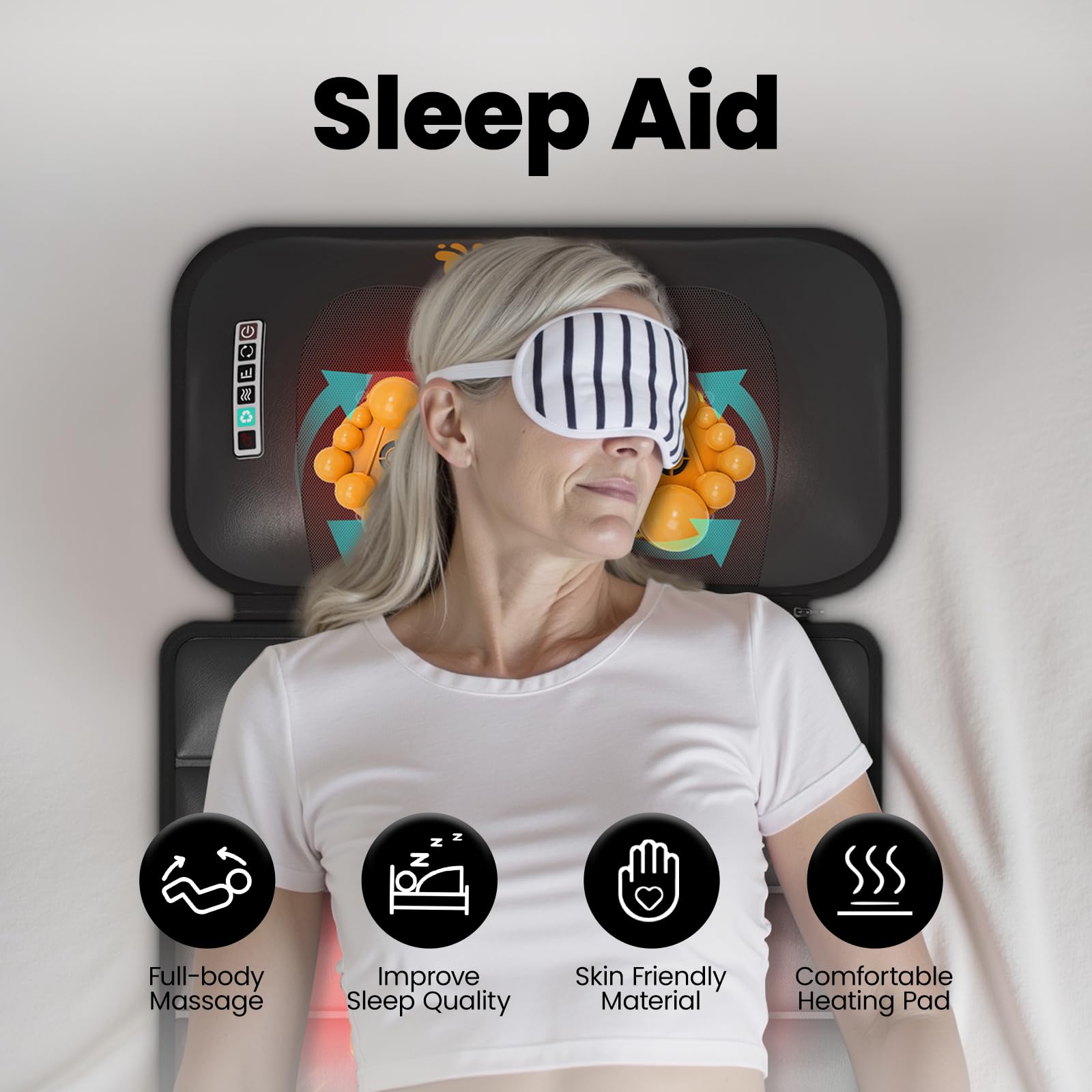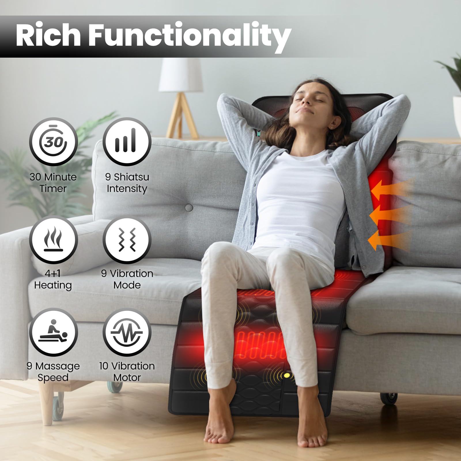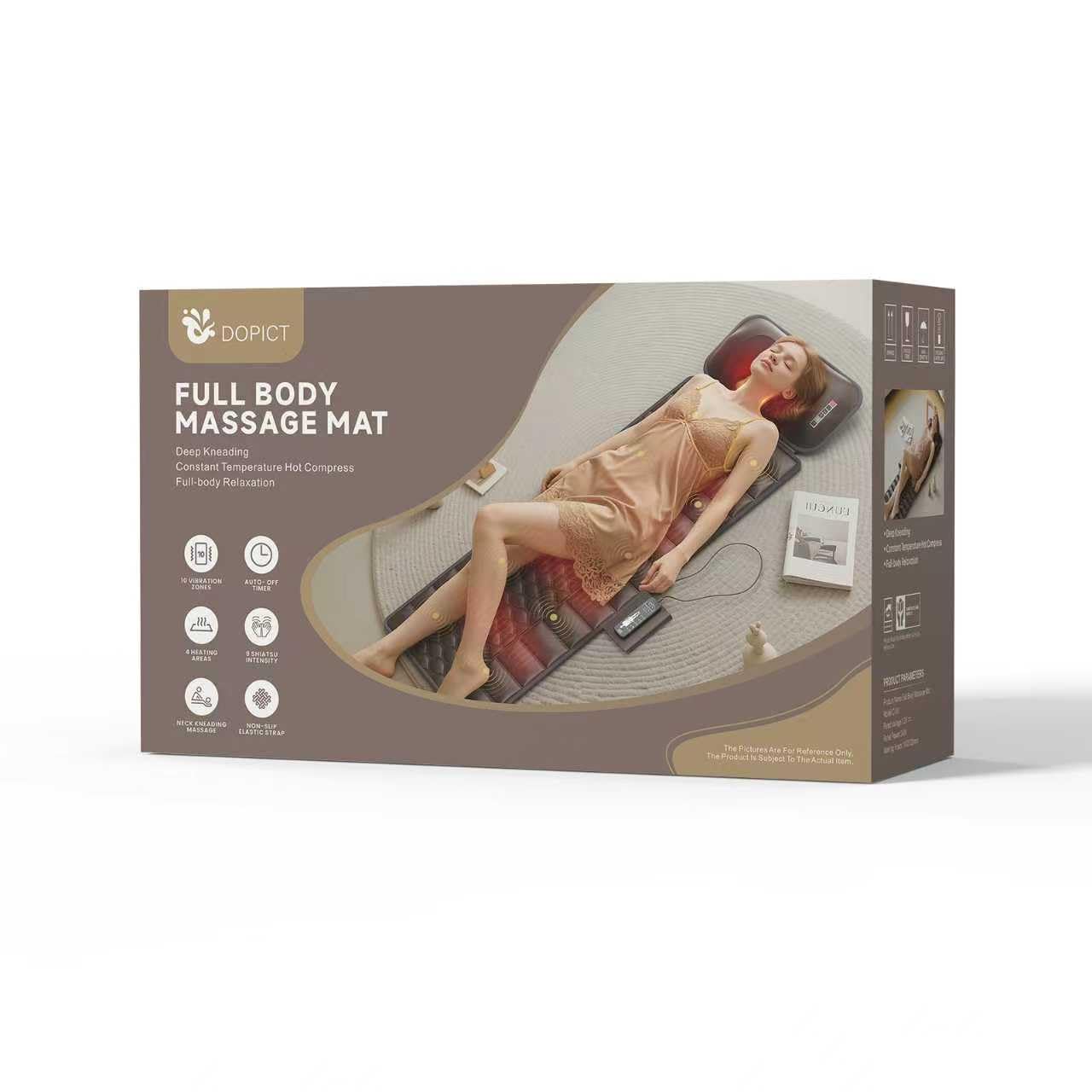 DOPICT Massage Mat, Detachable Neck Massager, Full Body Vibration Heating, Massage Pad with 10 Vibrating Motors and 9 Speed Settings for Home Office Use, Gift for Men Women Parents Christmas,Black