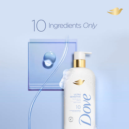 Dove Fragrance Free Body Wash Ultra Sensitive Gentle all-over cleanse 10 essential ingredients 18.5 oz