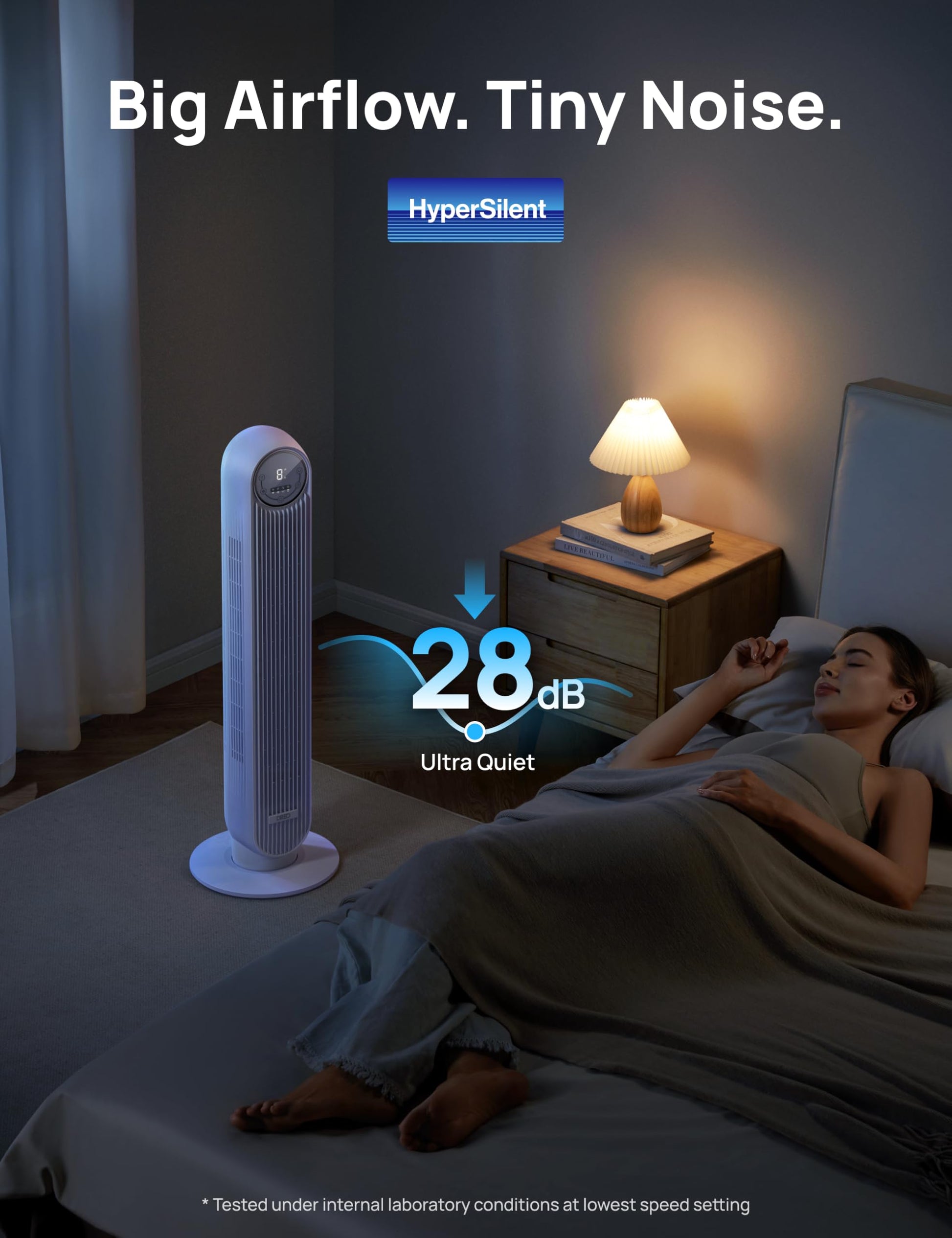 Dreo Tower Fan for Bedroom, 25ft/s Smart Standing Fans, 90° Oscillating Floor Fan with 4 Modes, 4 Speeds, 8H Timer, 28dB, Bladeless, Remote, 28 dB, Works with WiFi Voice Control