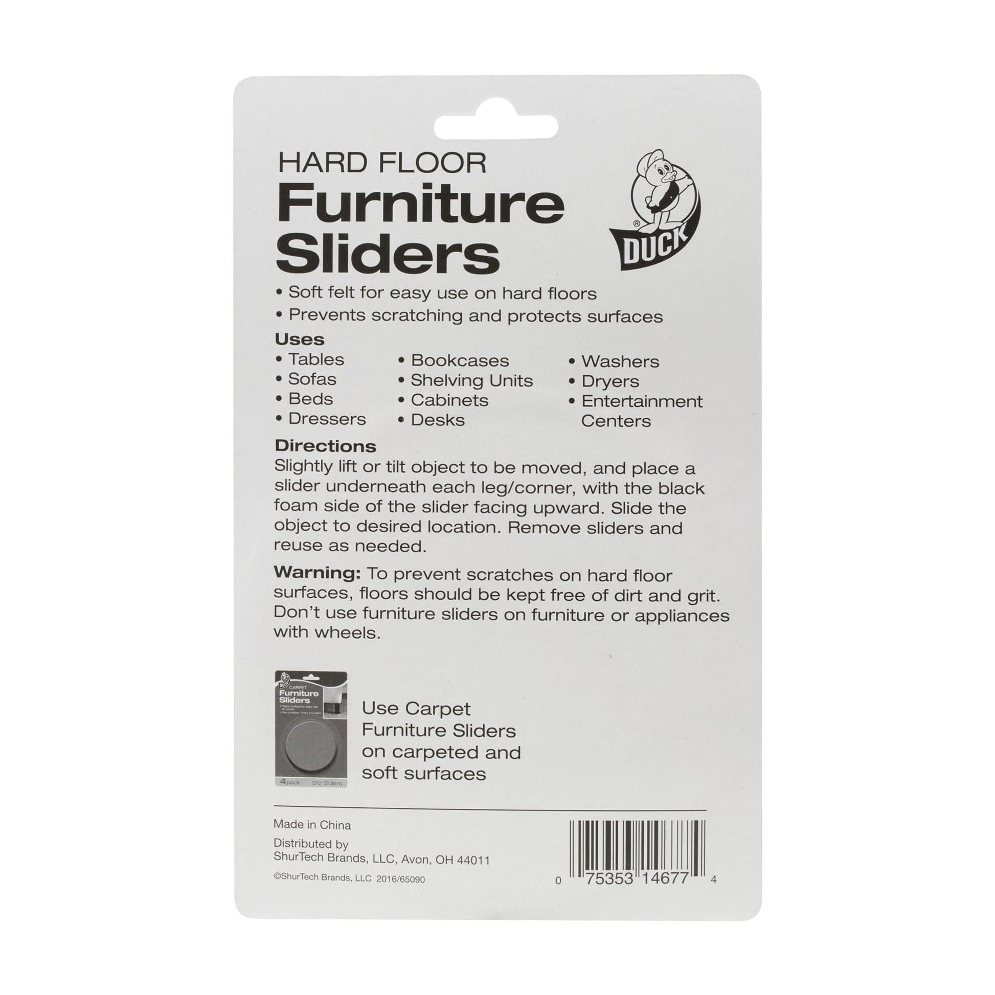 Duck Brand Felt Furniture Sliders for Hard Floors, 3.5 Inch Width, 4 pack,Brown