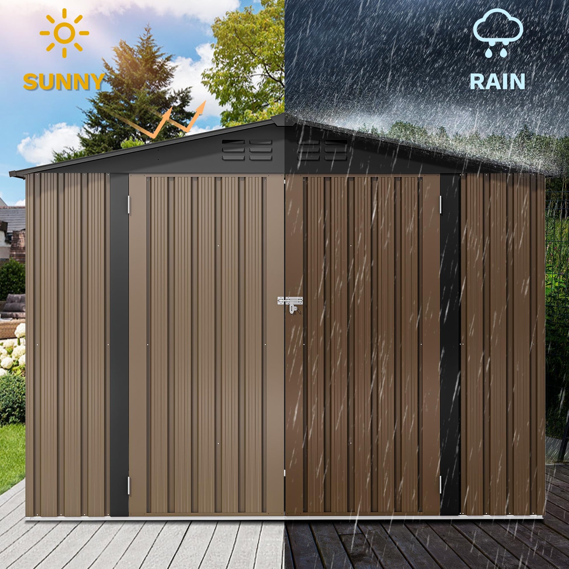 DWVO 8'x6' Large Metal Outdoor Storage Shed, Heavy Duty Tool Storage Sheds for Backyard Patio Lawn - Ideal for Bicycles, Garden Tools, and Lawn Equipment, Easy-to-Assemble, Brown