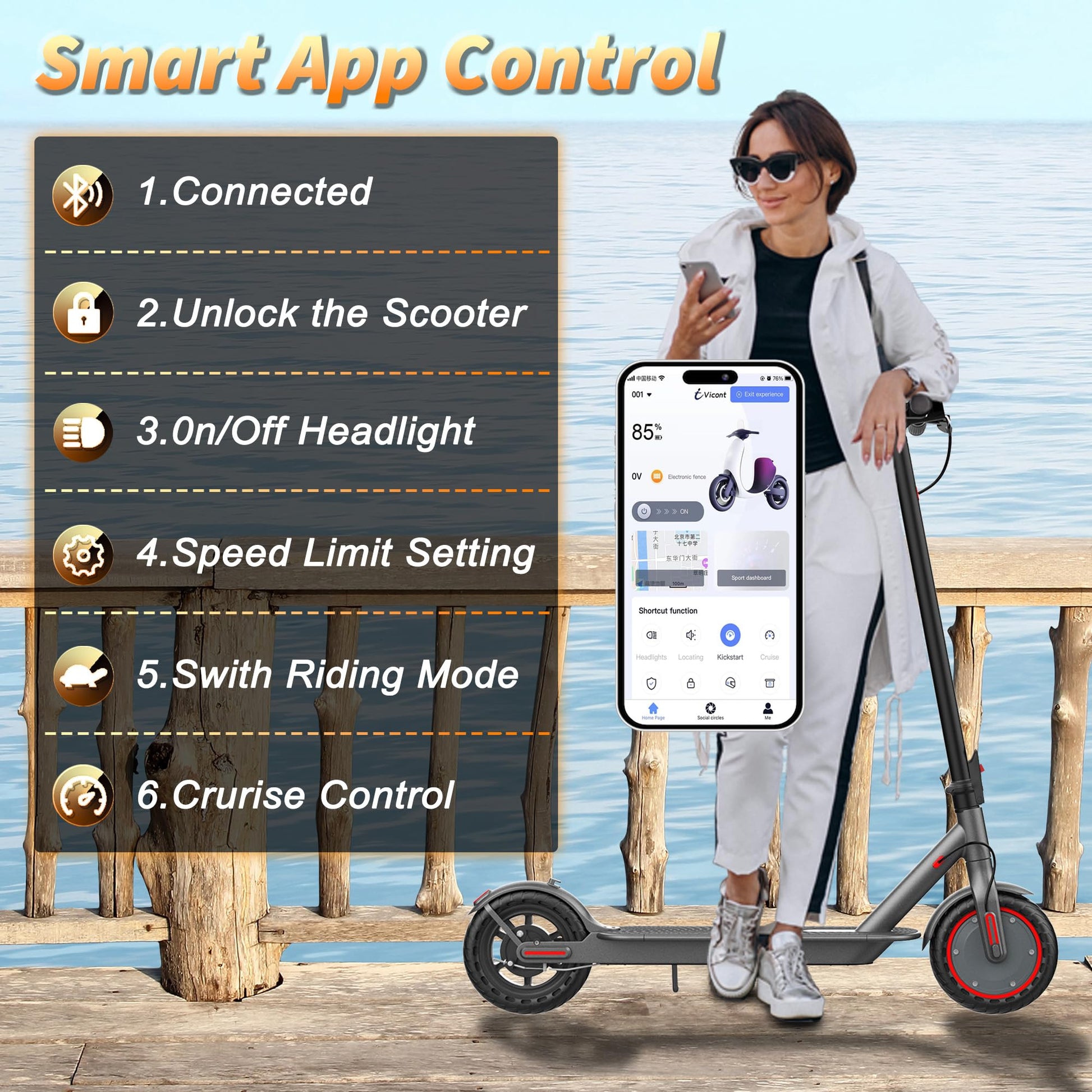 Electric Scooter Adults, Powerful 350W E-Scooter, Max 19 Mph & 15-19 Miles Range Scooters, Folding Scooters with 8.5" Solid Tires, Commuting Scooter Kick Scooter with APP Control (JS03-21Miles-350W)