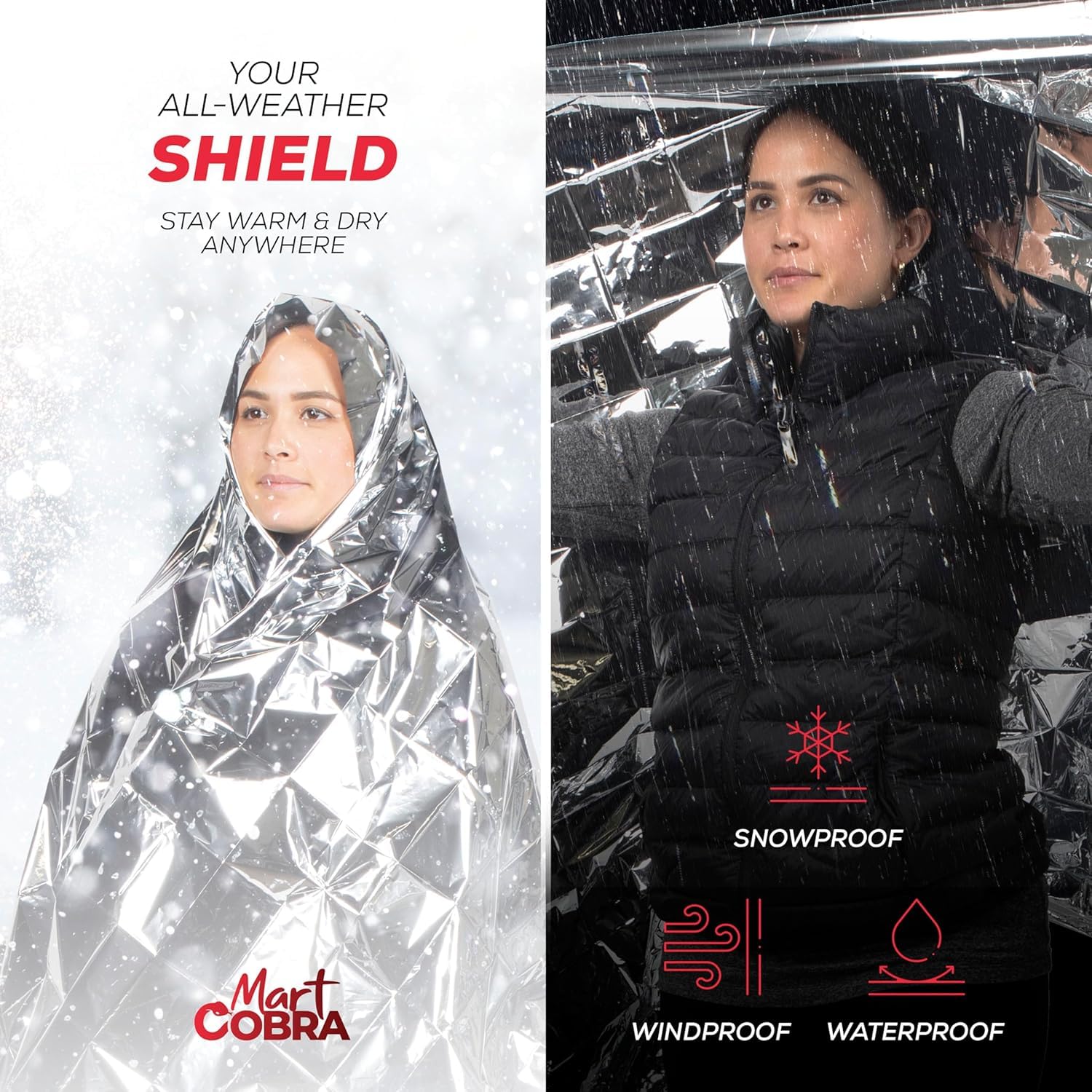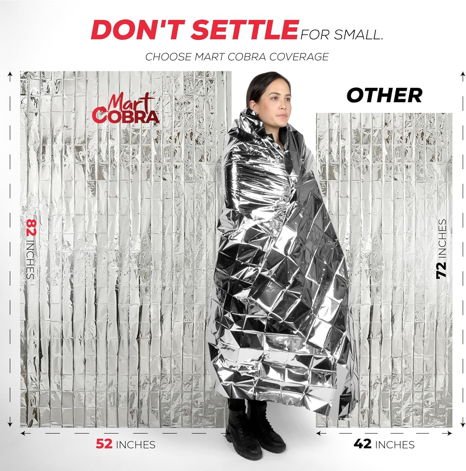 Emergency Blanket 4-Pack Space Mylar Blankets Survival Gear and Supplies Reusable Thermal Camping Hunting Essentials First Aid Car Backpacking Marathon Kit Prepper Go Rave Bug Out Bag Foil Cold Winter