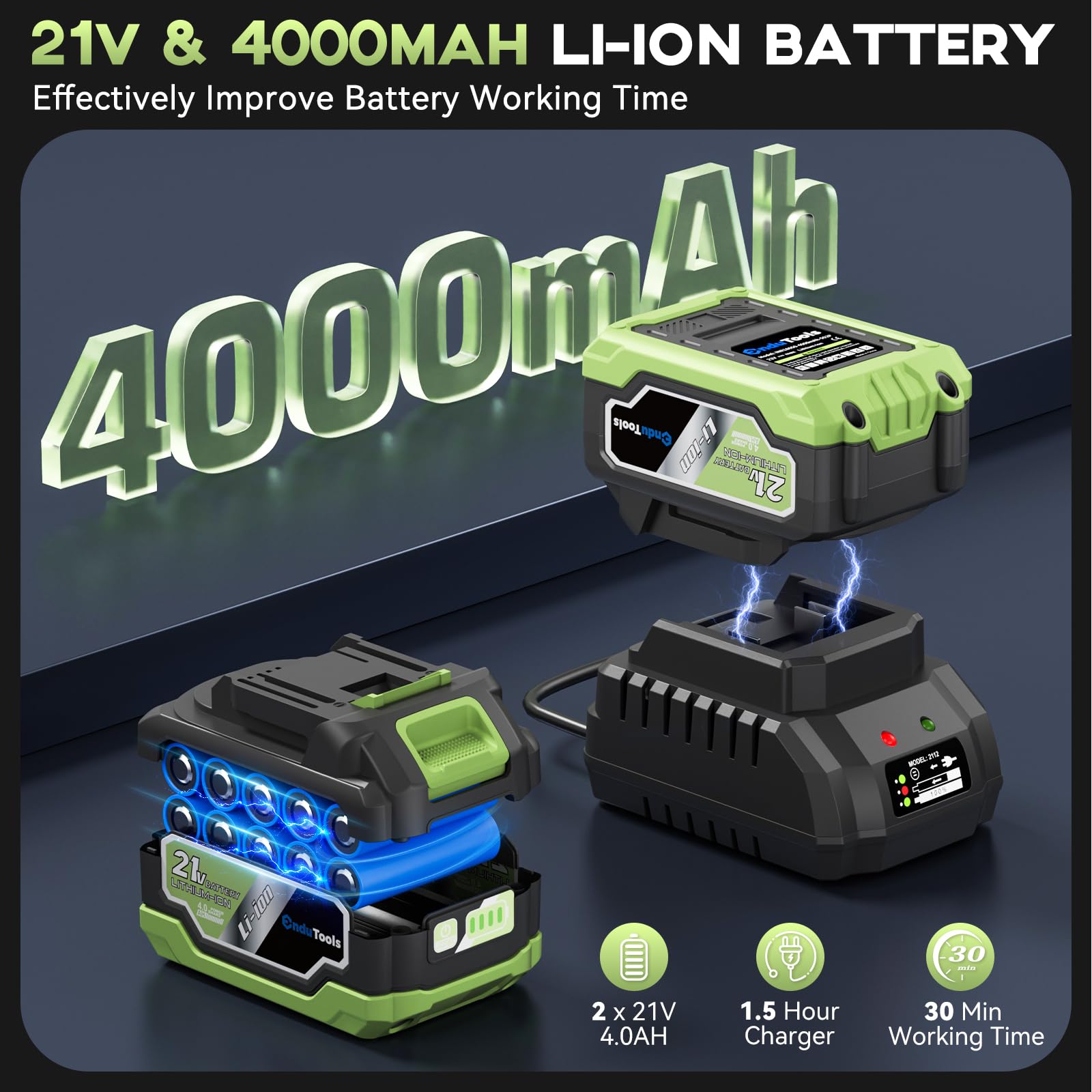 EnduTools Leaf Blower Cordless - 650 CFM 150 MPH Electric Leaf Blower with 2 x 4.0Ah Batteries & Fast Charger, 2-Speed Settings, Lightweight Blower for Lawn, Yard, Leaves, Dust, and Snow Care (Green)