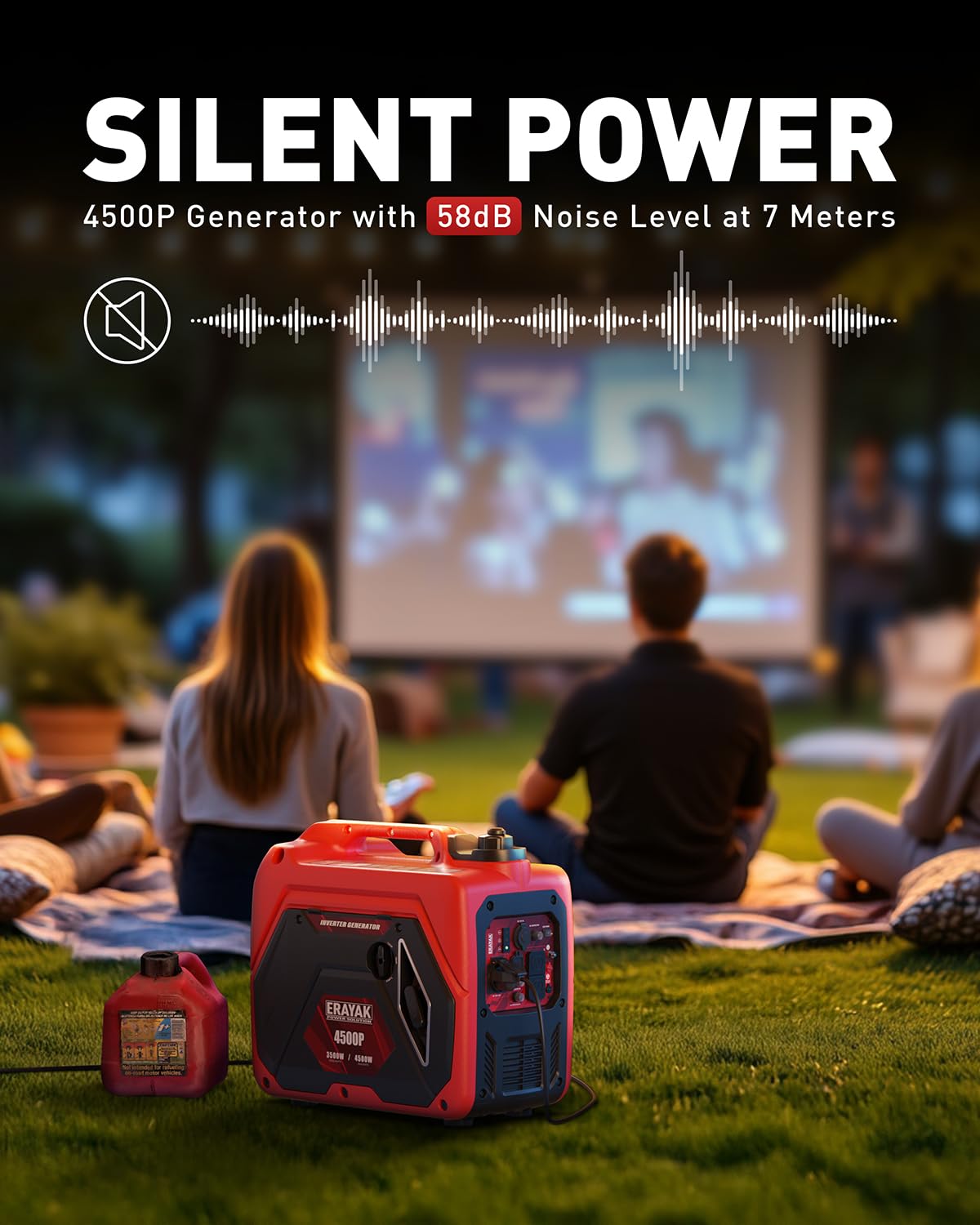 ERAYAK 4500W Portable Inverter Generator for Home Use, Super Quiet Small Generator for Camping Outdoor Emergency Power Backup, Gas Powered Engine, ECO Mode, EPA Compliant