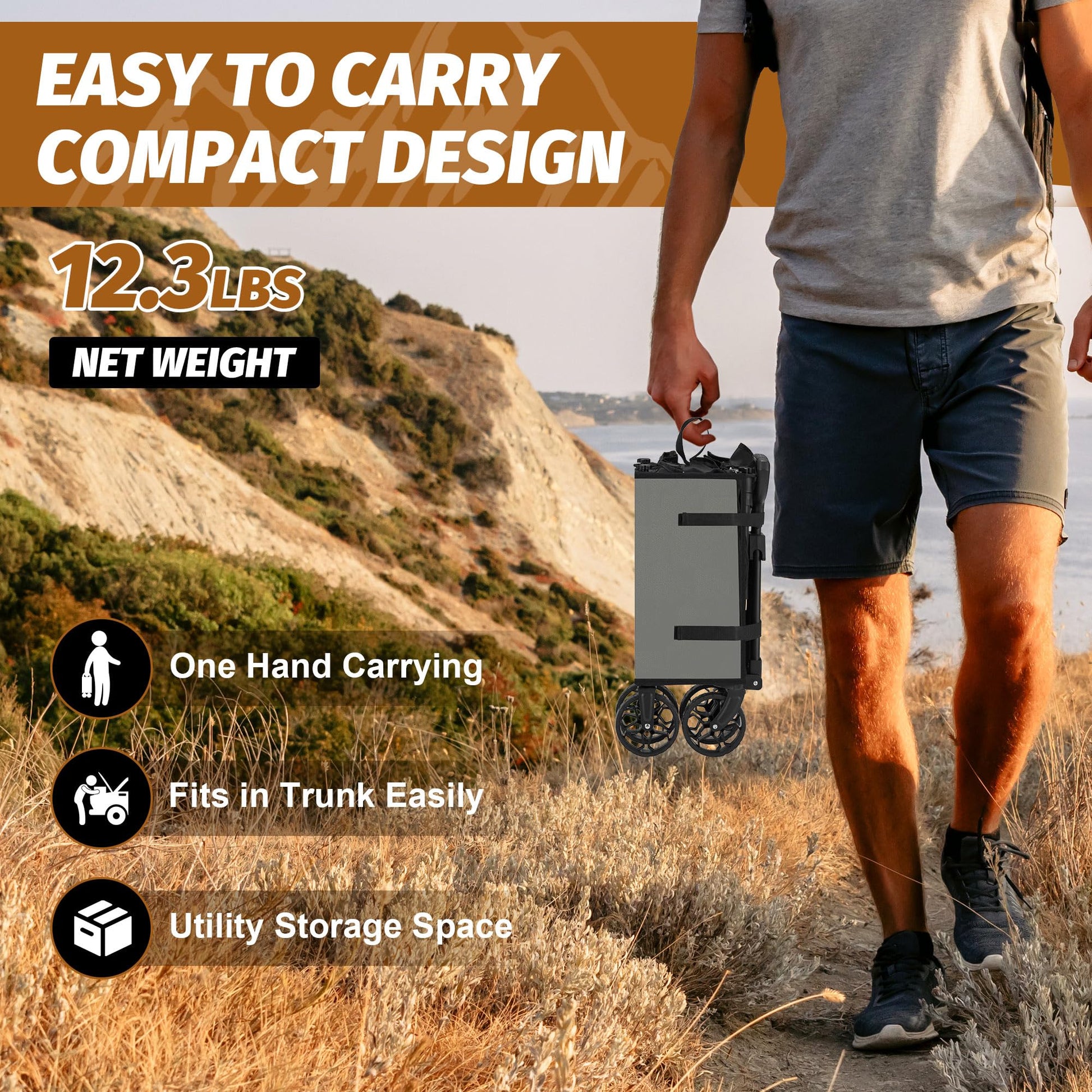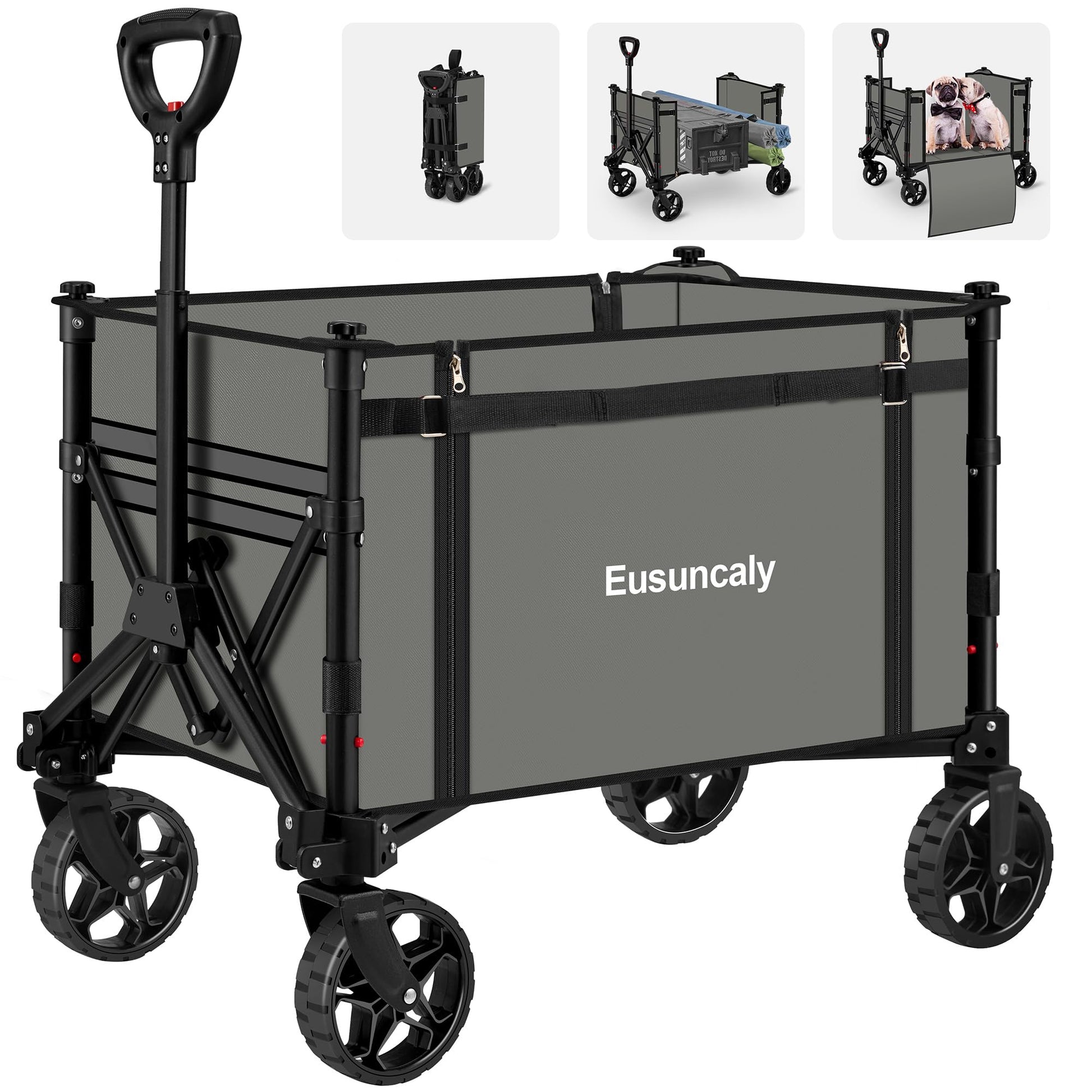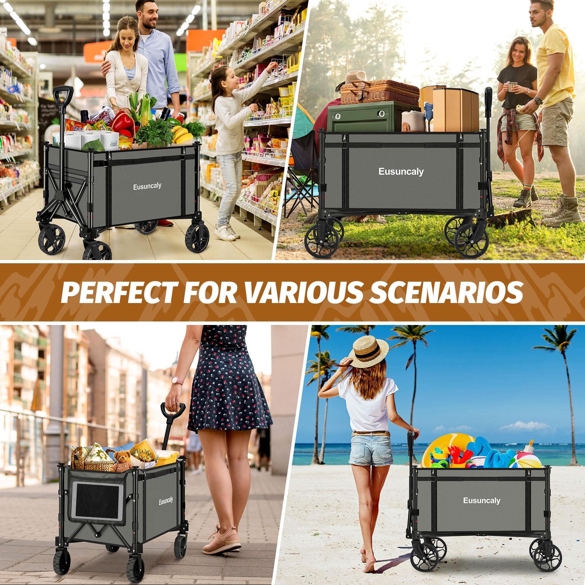 Eusuncaly Collapsible Wagon with Wheels, Wagons Carts Foldable, Heavy Duty Folding Utility Cart for Grocery, Camping, Shopping, Sports, Garden, Fishing, Grey