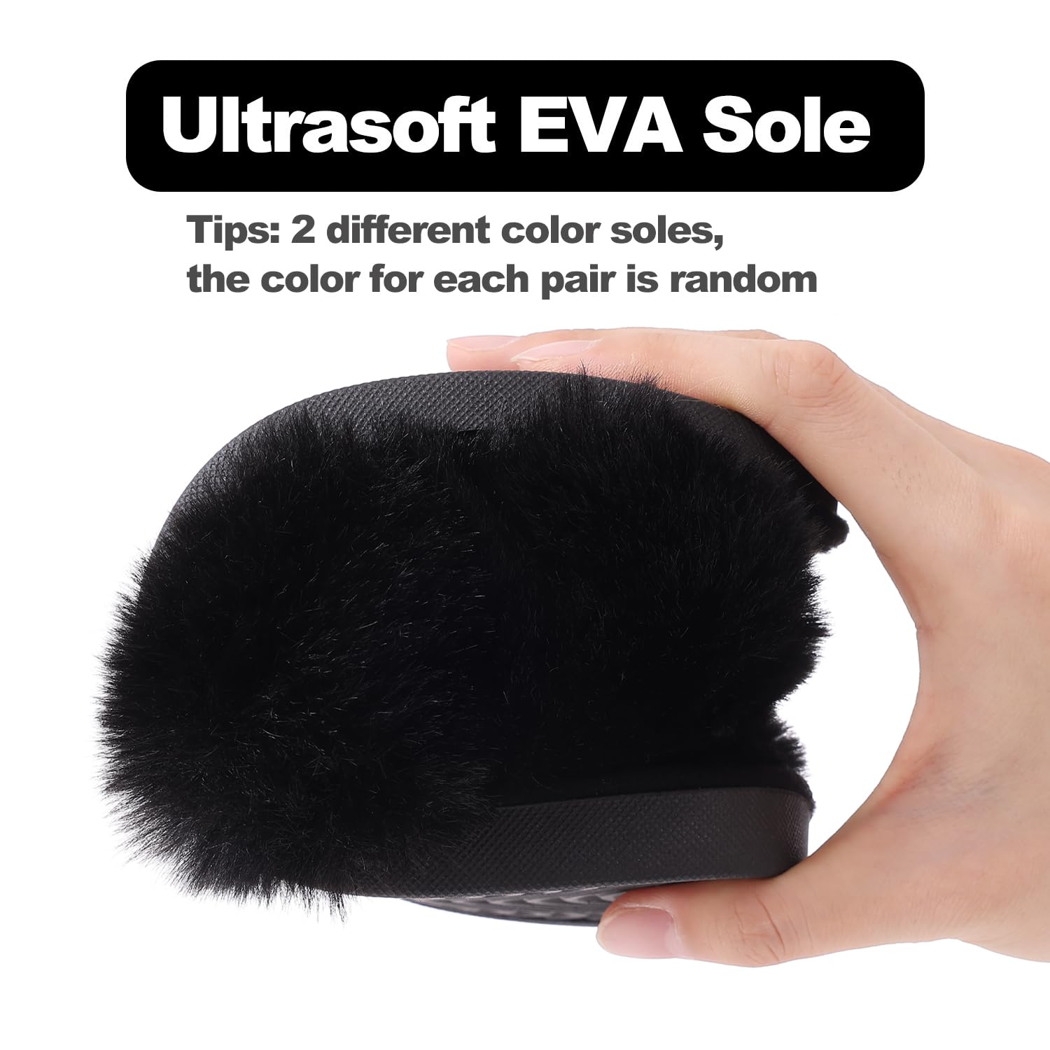Evshine Women's Fuzzy Slippers Cross Band Memory Foam House Slippers Open Toe, Black, 38-39 (Size 7-8)