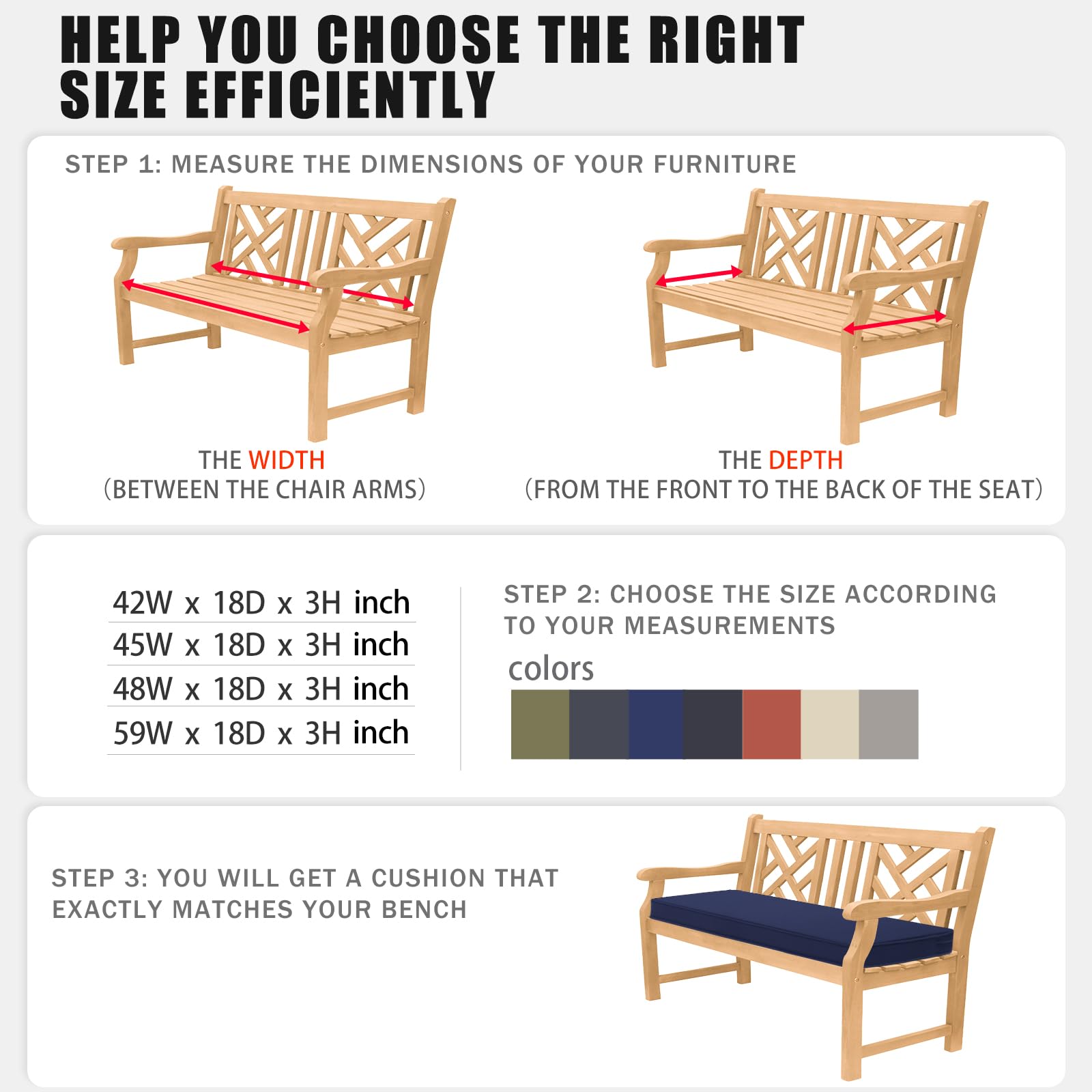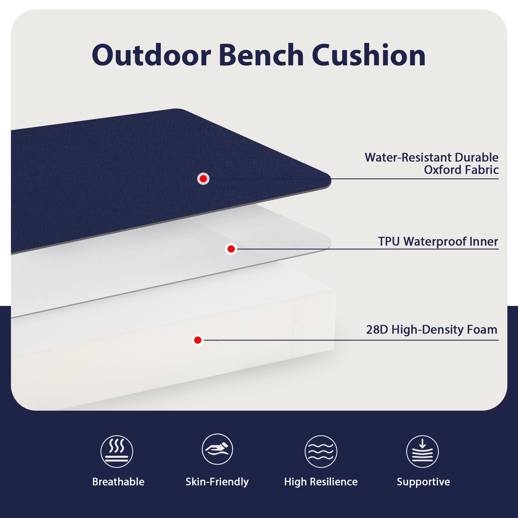 Favoyard Outdoor Bench Cushion 42 x 18 Inch Waterproof Patio Furniture Cushions 3-Year Color Fastness Garden Sofa Settee Couch Swing Pads with Handle and Adjustable Straps, Blue