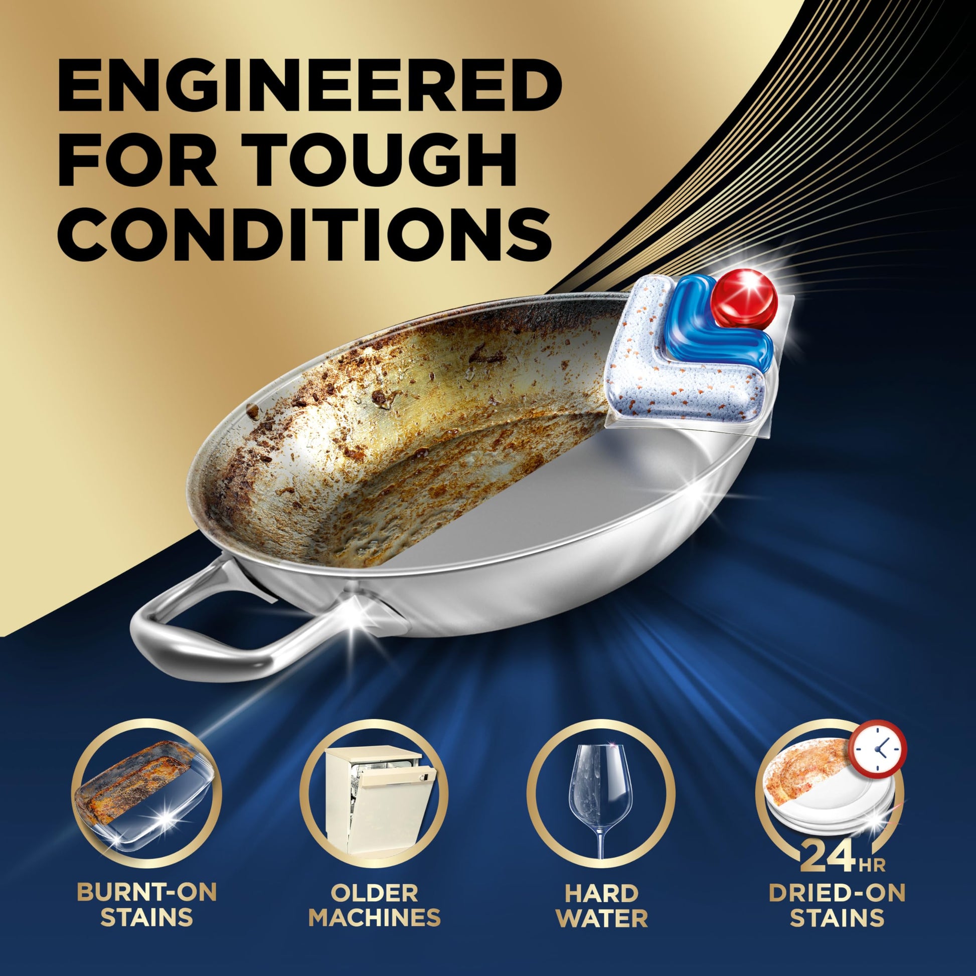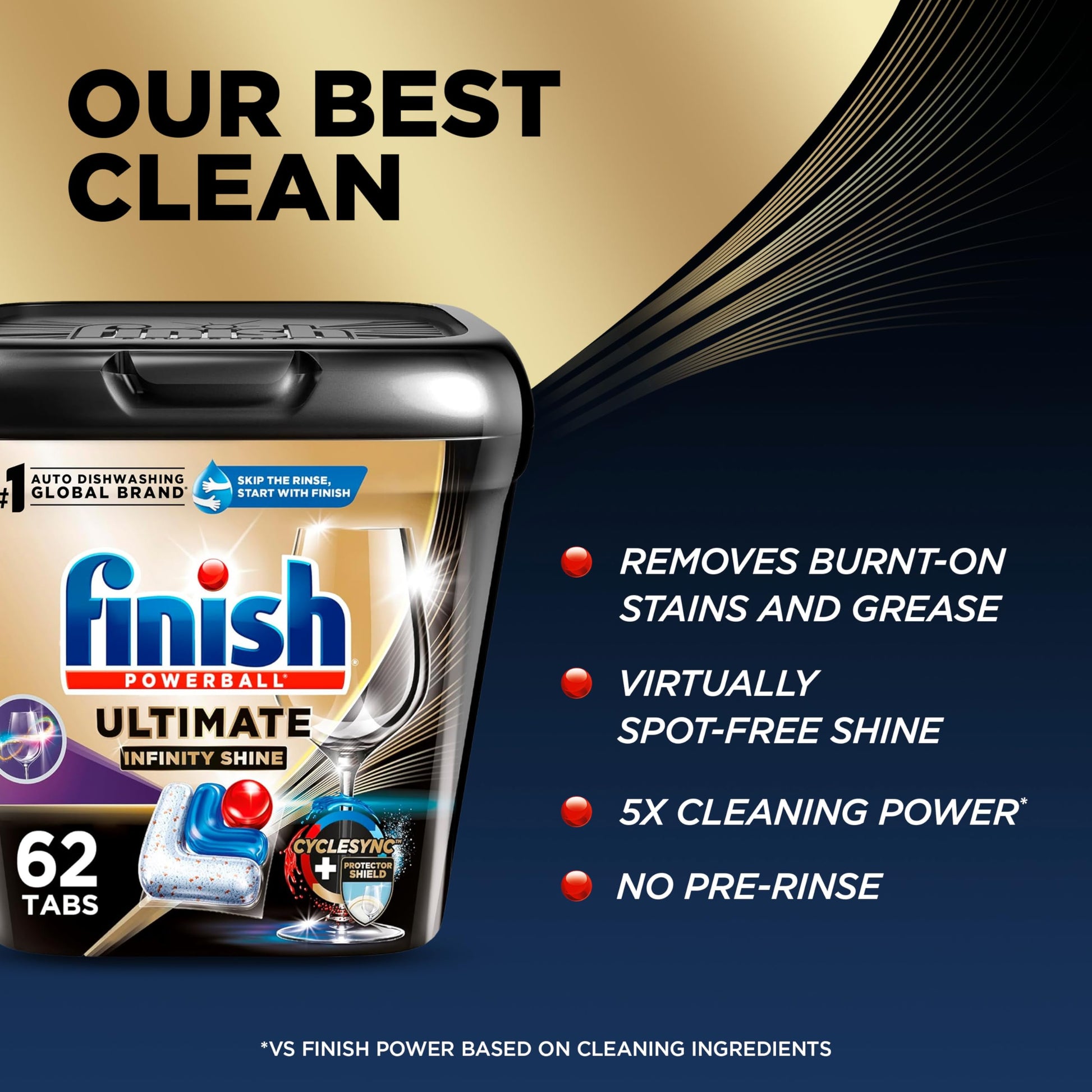 Finish Ultimate Infinity Shine Dishwasher Tabs, No Pre-Rinse Dishwasher Detergent Soap Removes Burnt-On Stain, with Protector Shield & CycleSync Technology, Degreasing & Scrubbing Power, 62 Count