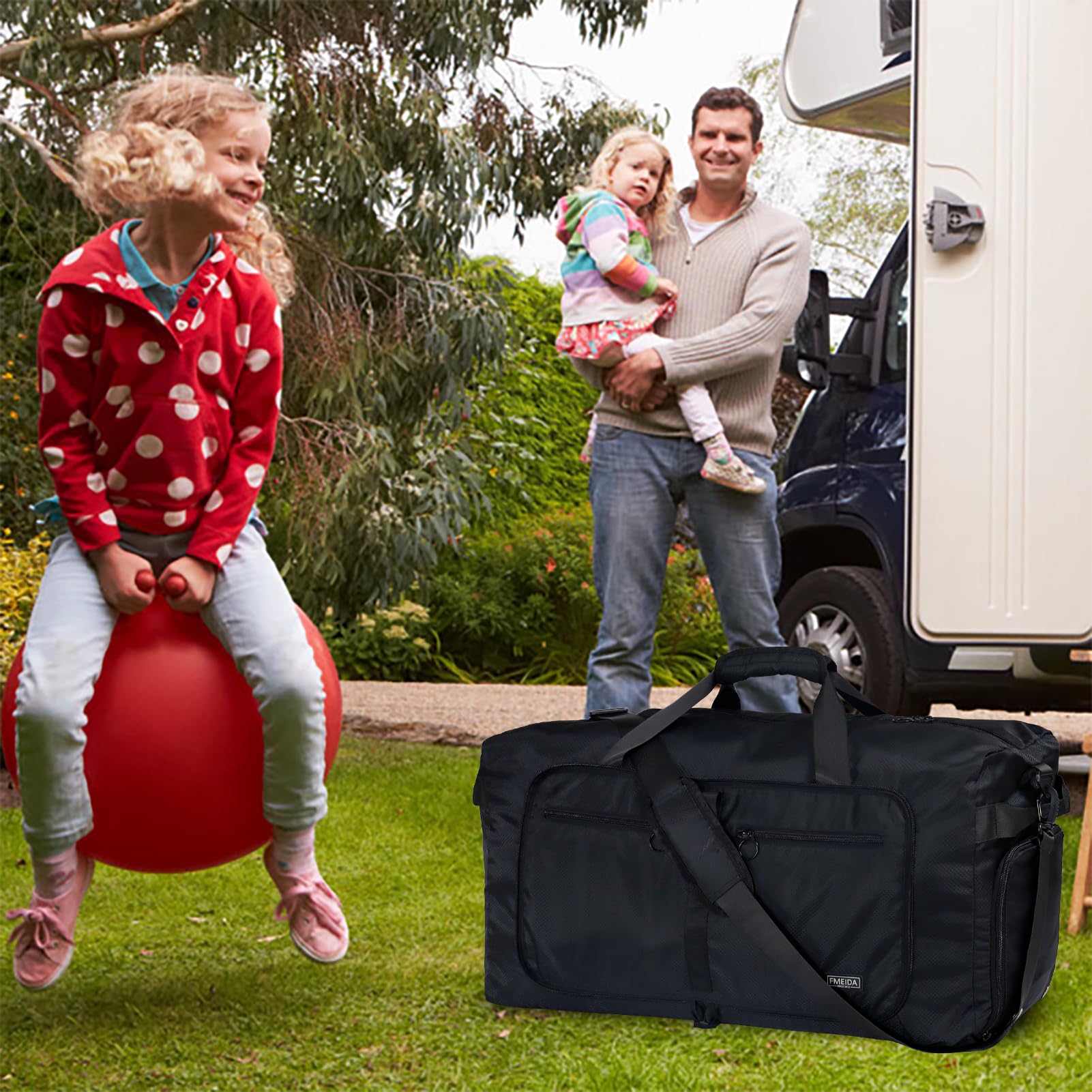 Fmeida 65L Duffle Bag with Shoes Compartment, Foldable Travel Duffel Bags for Men Women, Large Packable Travel Bag Water Repellent & Tear Resistant (Black)