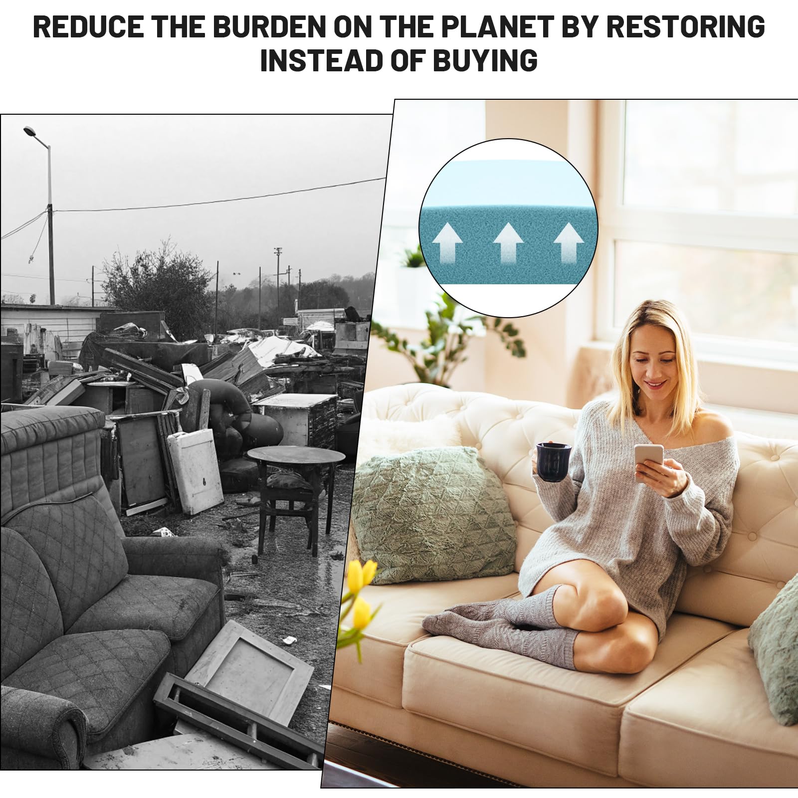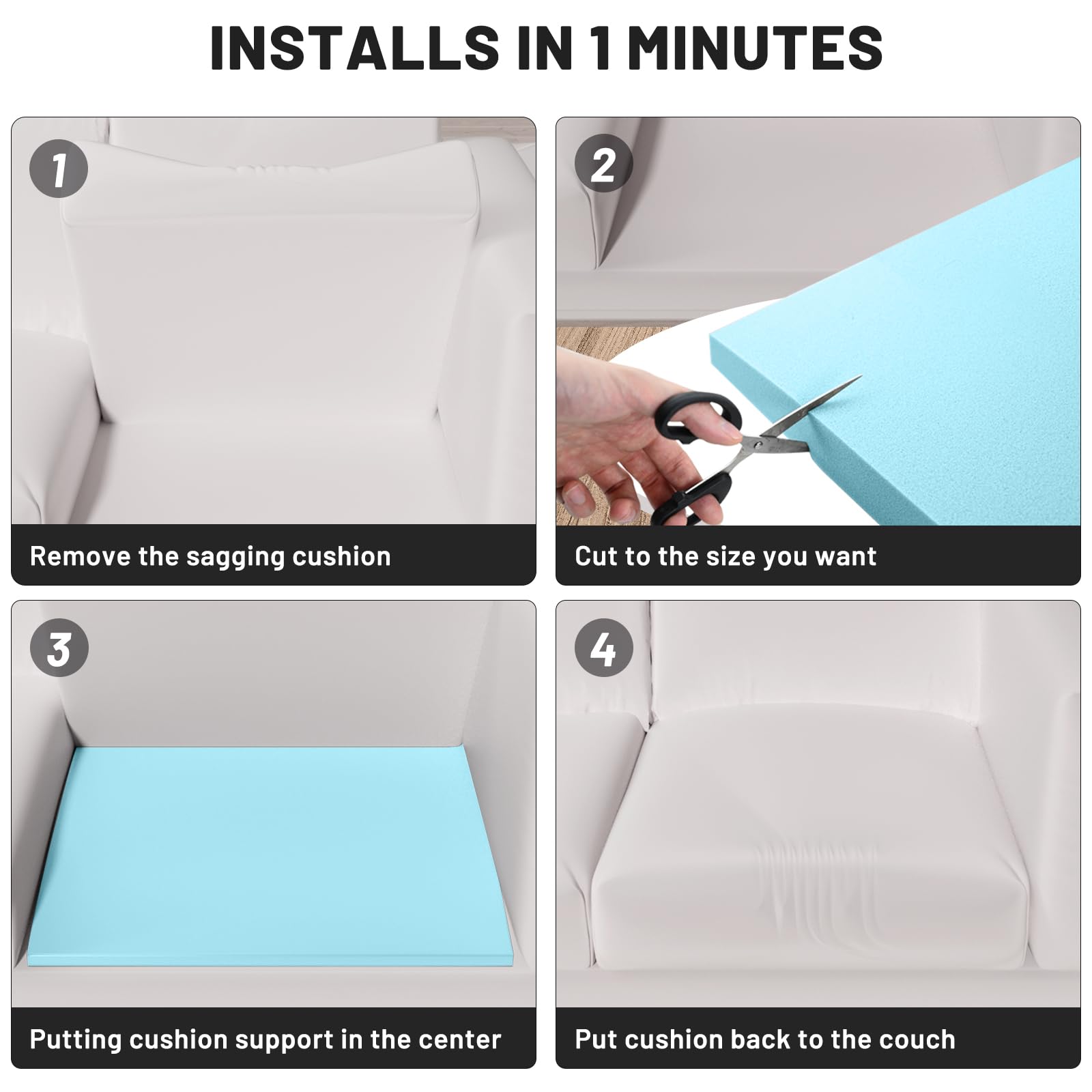 Foamagic Couch Cushion Support, Sofa Cushion Support for Sagging Couch Seat, 20x20x3.15in, Couch Replacement Insert, High Density Foam Furniture Seat Sagging Repair, Trapezoid 40D, Blue Set of 3
