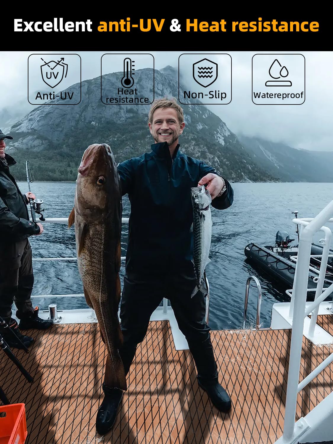 FOCEAN Boat Flooring EVA Foam Boat Decking Marine Mat Non-Slip Self-Adhesive Flooring Sheet for Motorboat Kayak Surfboard Garden Swimming Pools, 94.5''x 15.7'', Brown with Black Lines
