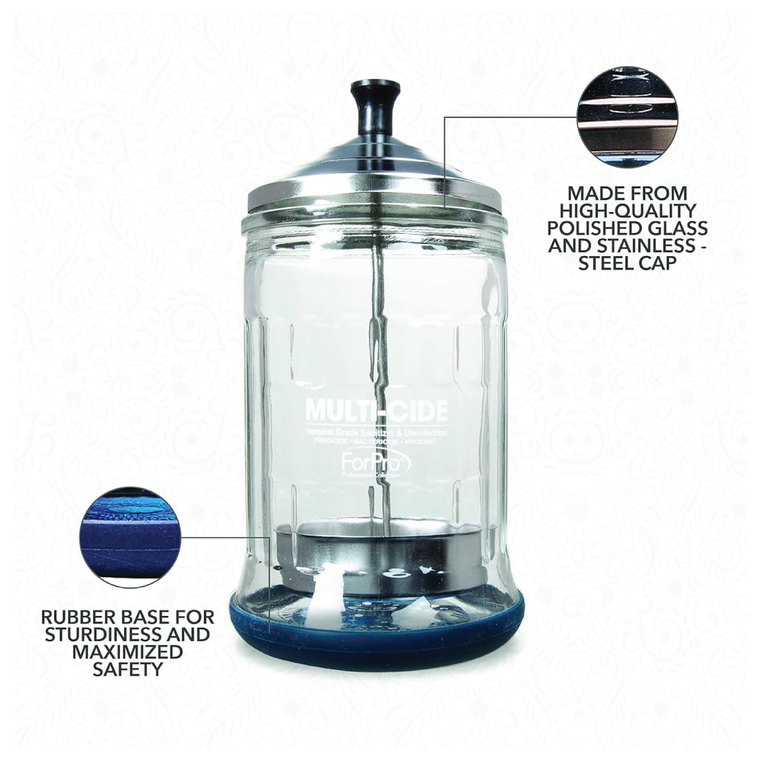 ForPro Professional Collection Multi-Cide Midsize Disinfecting Jar, Disinfectant Glass Jar for Manicure & Spa Implements, 21 Ounces