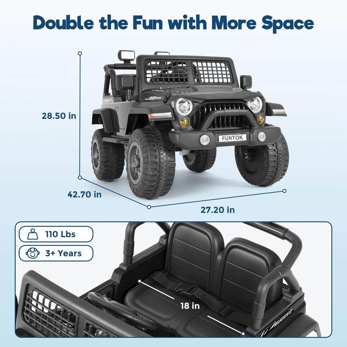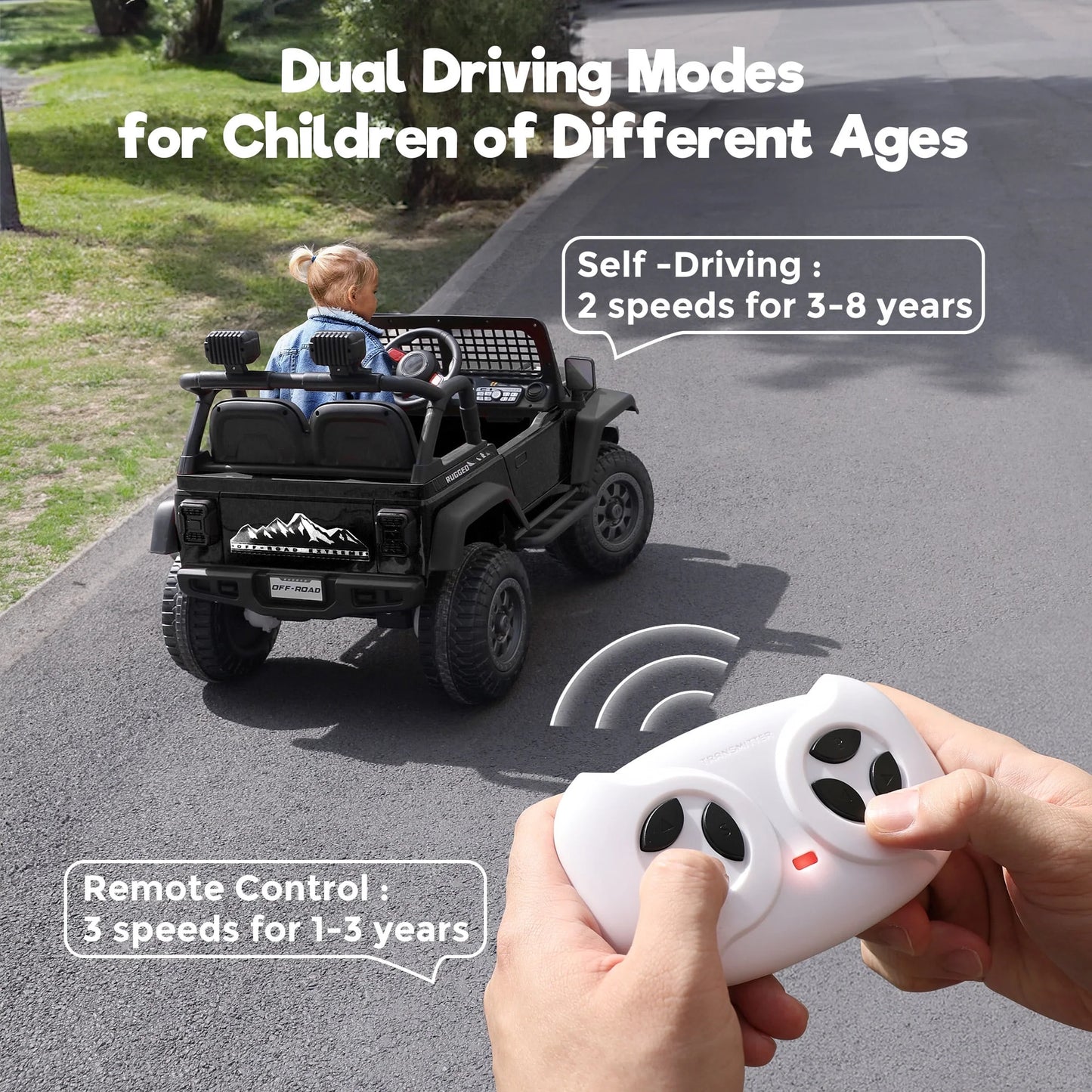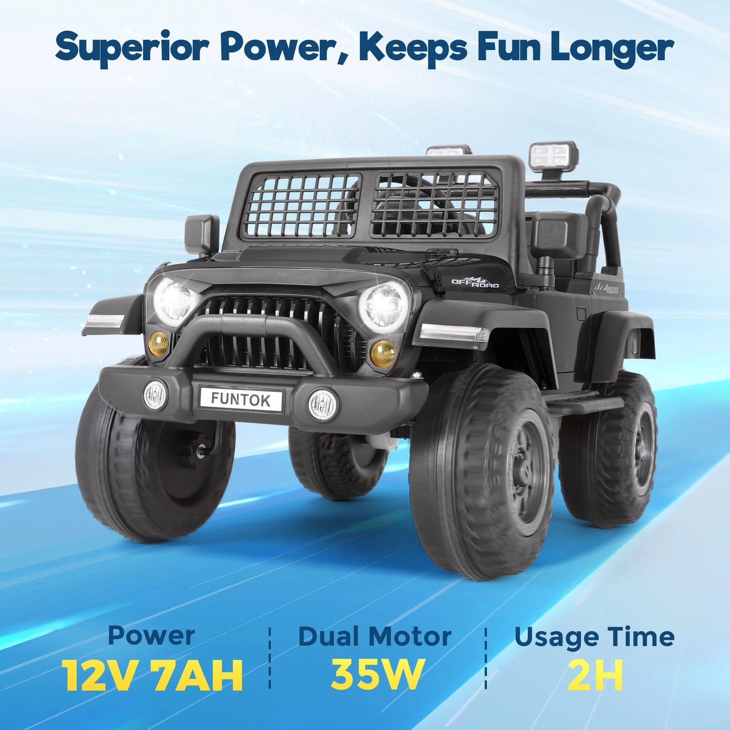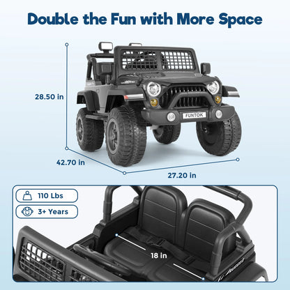 FUNTOK 12V 7AH 2 Seater Electric Ride on Truck, Kids Battery Powered Ride Toy, Motorized Car for Toddlers w/ Remote Control, Bluetooth, Spring Suspension, MP3 Player & LED Lights,Black