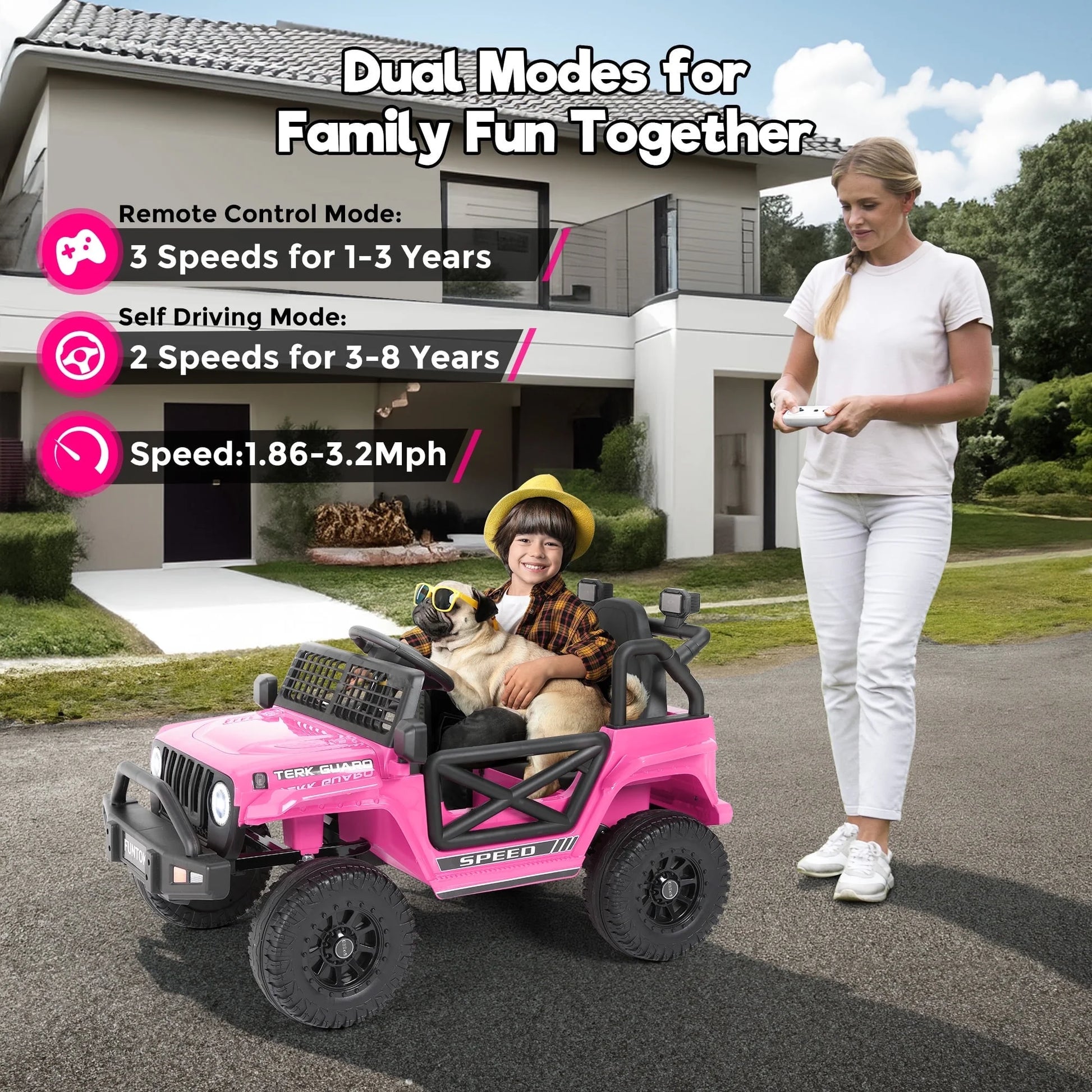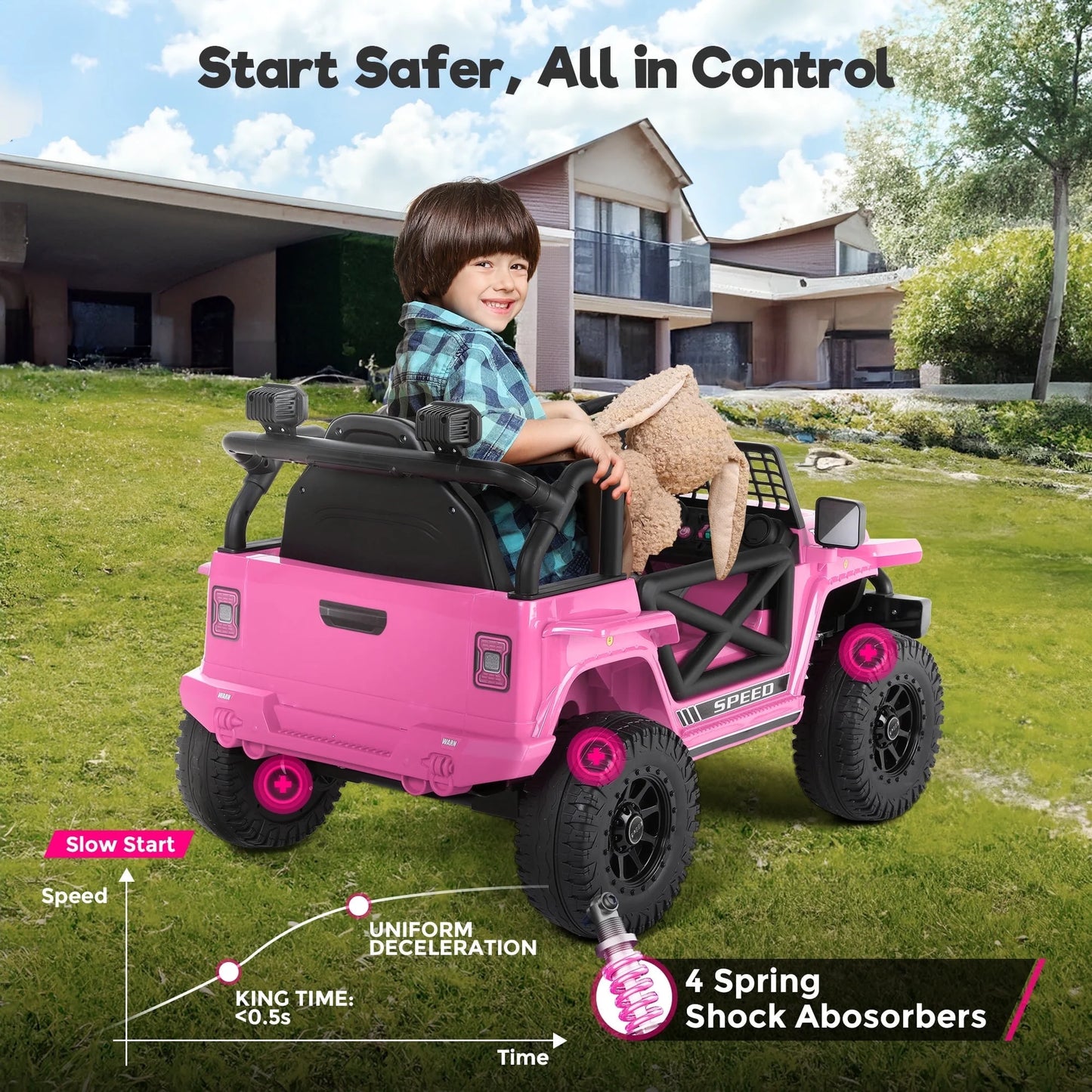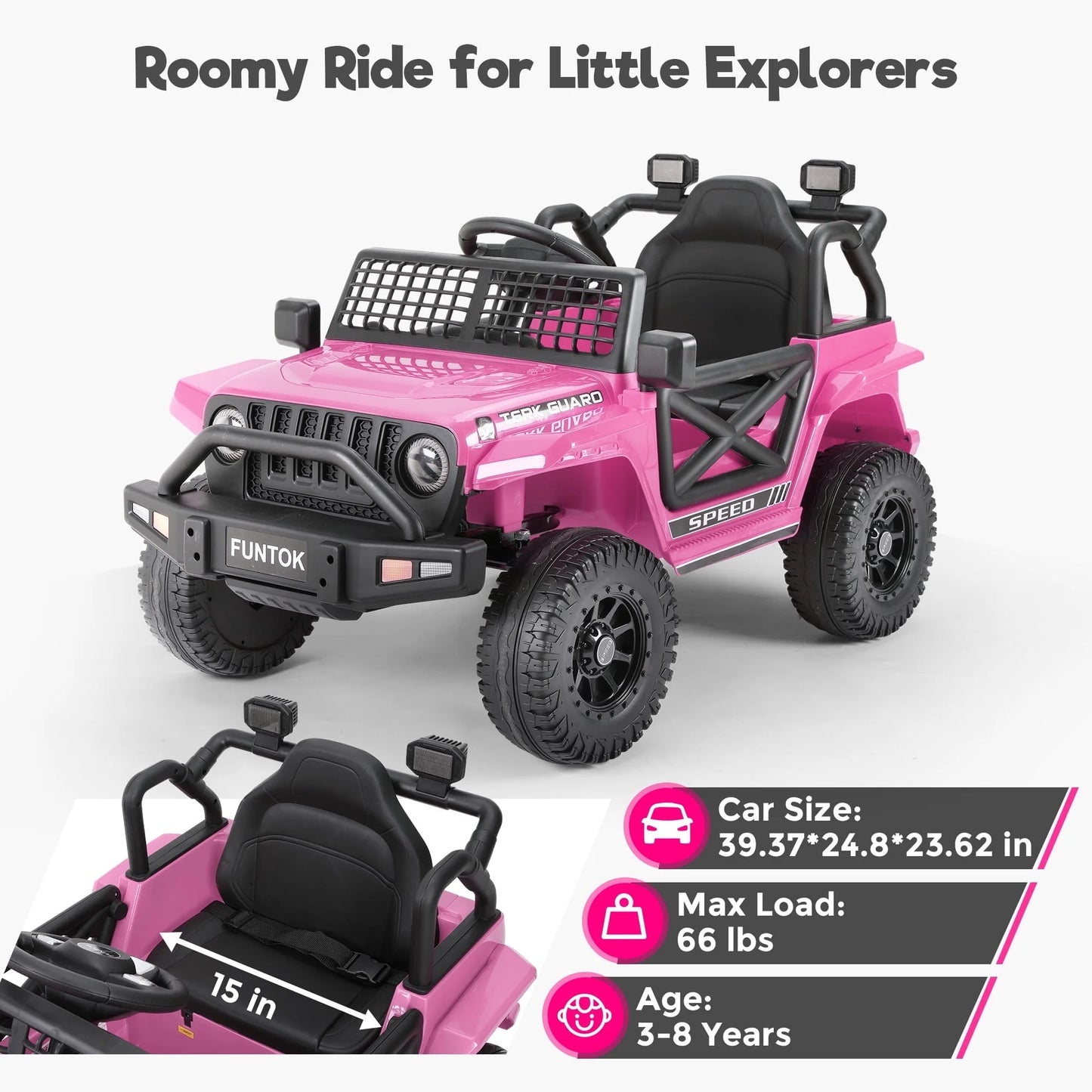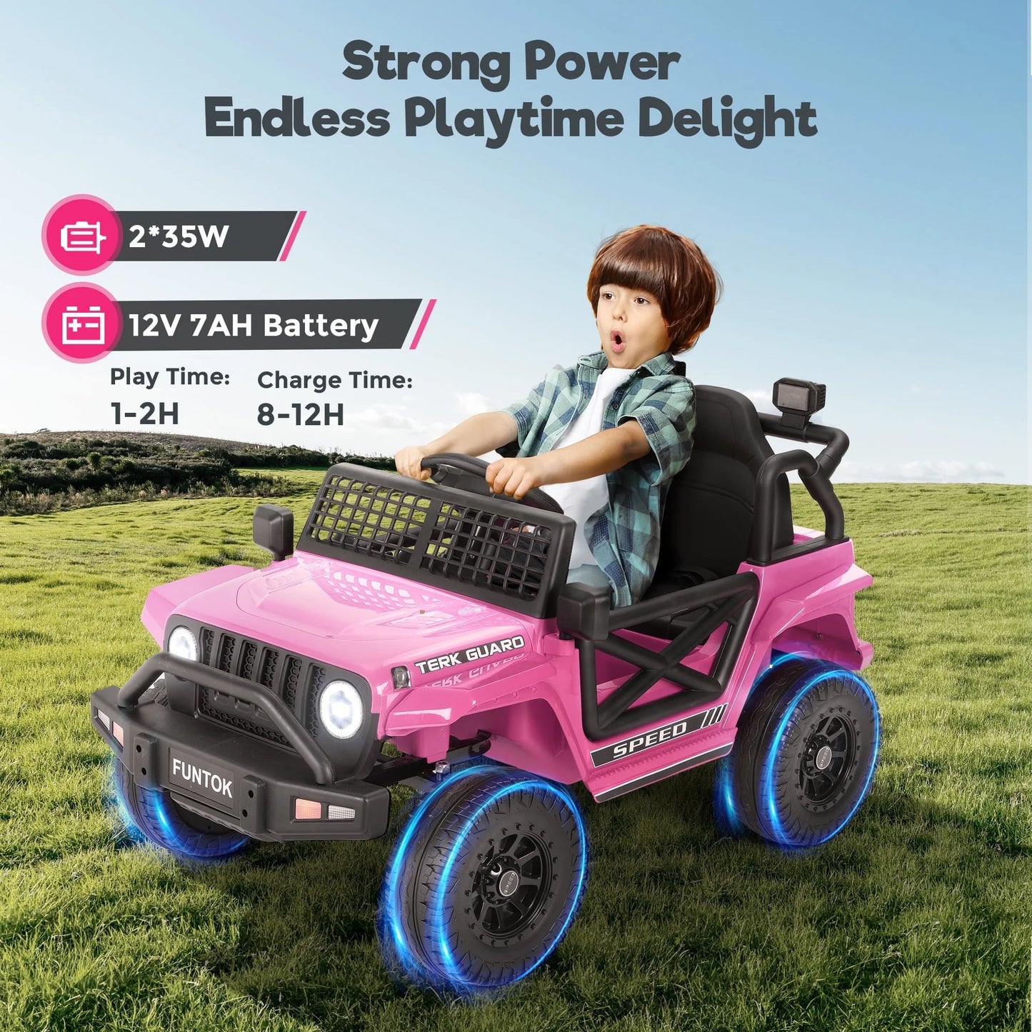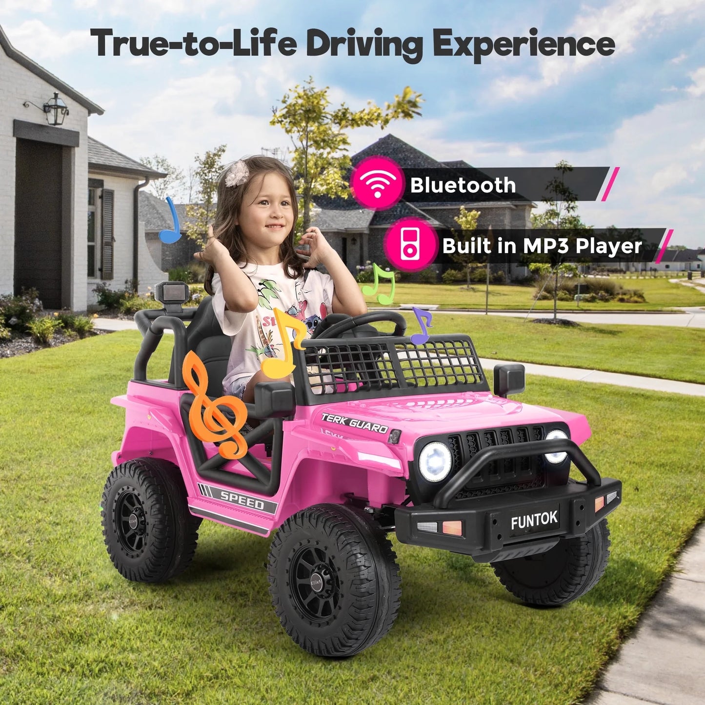 FUNTOK 12V 7AH Kids Ride on Truck, Electric Ride on Car Toy Battery Powered Truck Vehicle w/ Remote Control, Bluetooth, Spring Suspension, MP3 Player & LED Lights, 3 Speeds