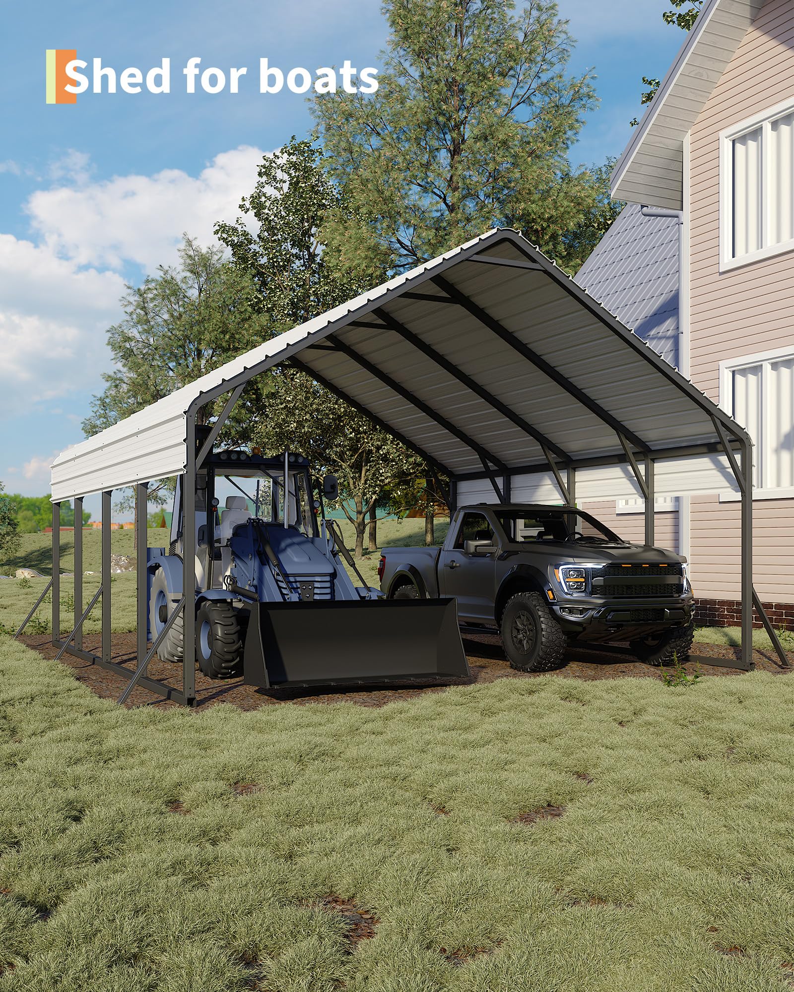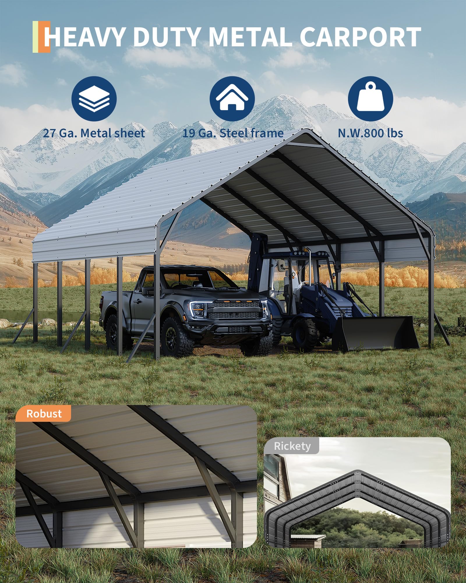 Garveelife 20'x20'x13' Metal Carport for 2 Cars, Heavy Duty Steel Frame for All Weather, Permanent Shelter for Boats, Full-Sized Pickup Trucks, and Tractors, N.W. 800 Lbs