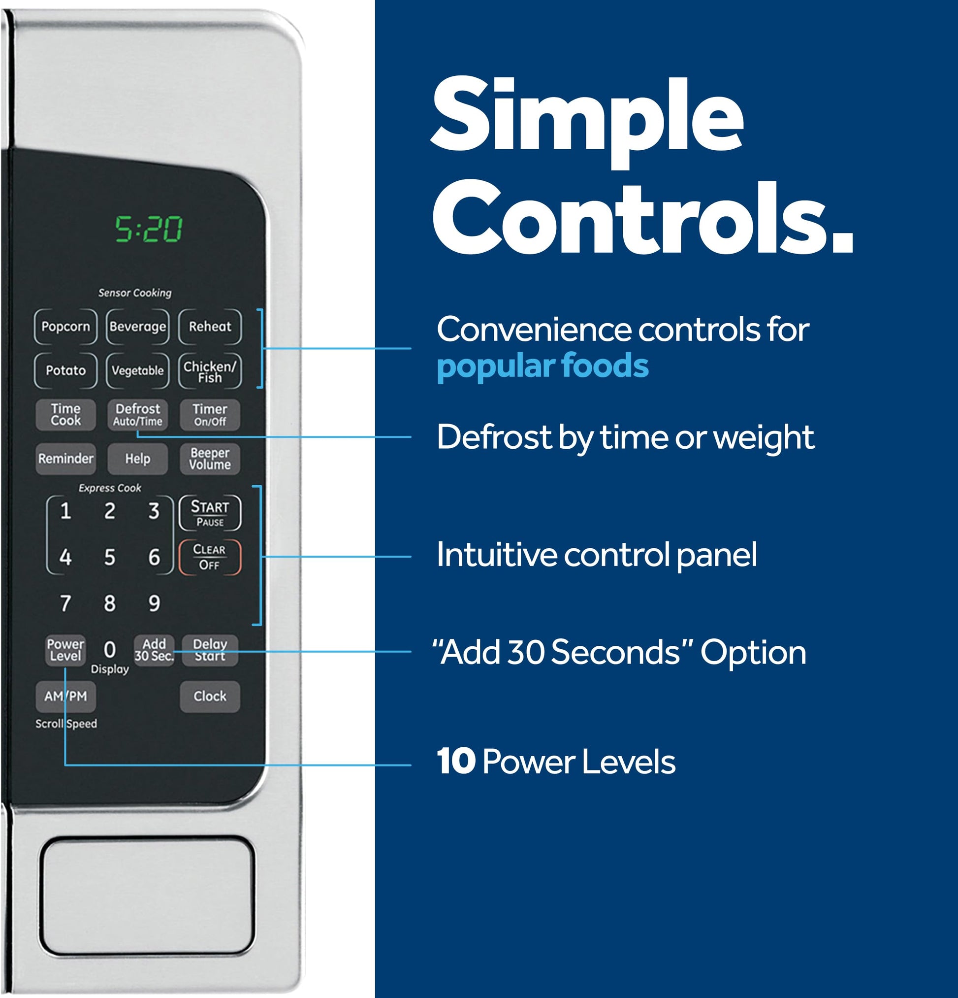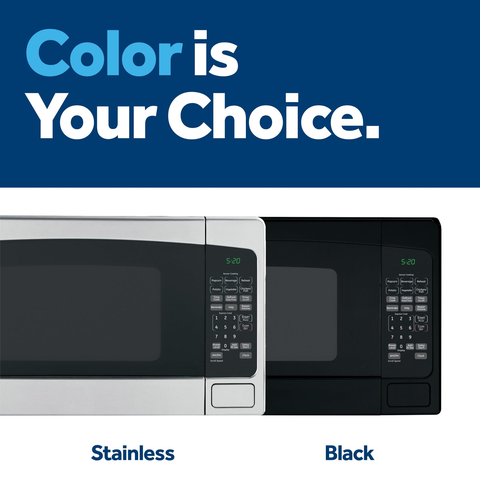 GE Countertop Microwave Oven,1, 200-watt Capacity, 2.0 Cubic Ft., 8 Auto Setting Cooking Settings, Child-Lock Technology, Kitchen Essentials for the Countertop, Dorm Room or Apartment, Stainless Steel