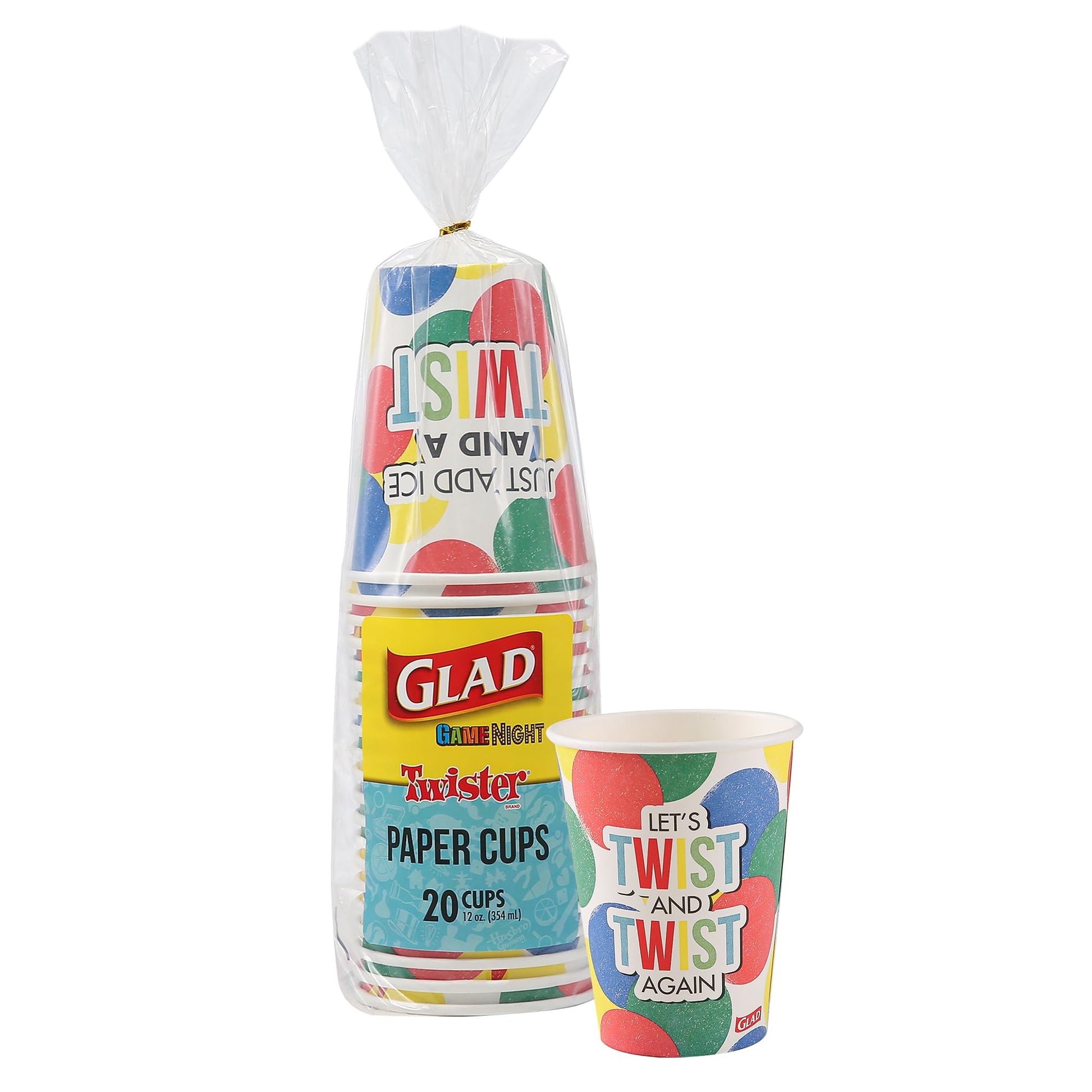 Glad Game Night Twister Disposable Paper Cups - Heavy Duty Drinking Cup for Kids & Adults, Classic Board Games Fun - 12 oz, 20 Count