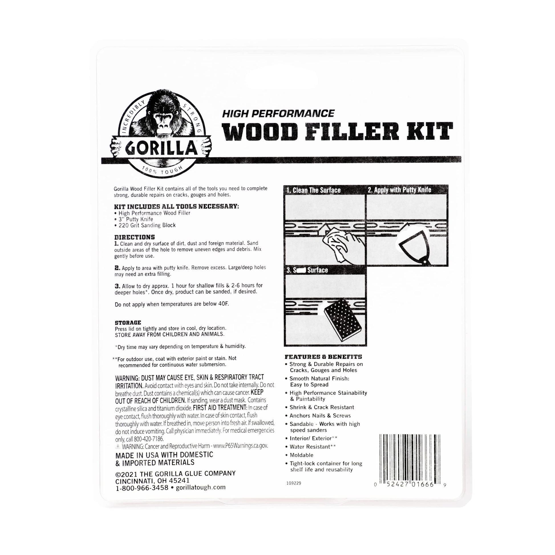 Gorilla All Purpose Wood Filler Wood Repair Kit with Putty Knife and Sanding Block