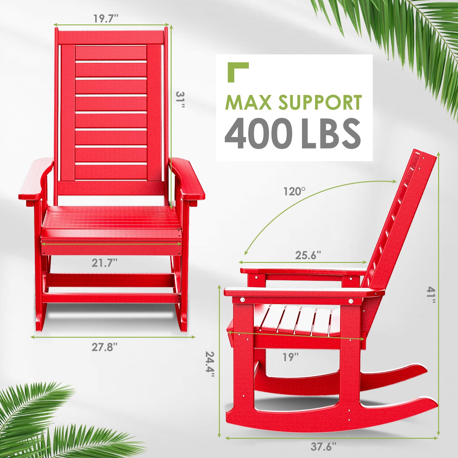 GREENVINES Outdoor Rocking Chairs | Set of 2 | Porch Rocker | HDPE Plastic | Red | Oversized Rockers | High Back | Big & Tall | Ladder Back | for Patio Outside Backyard Balcony