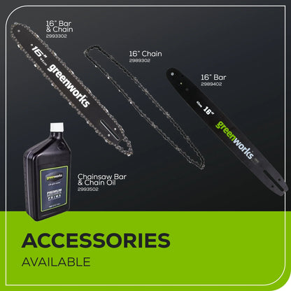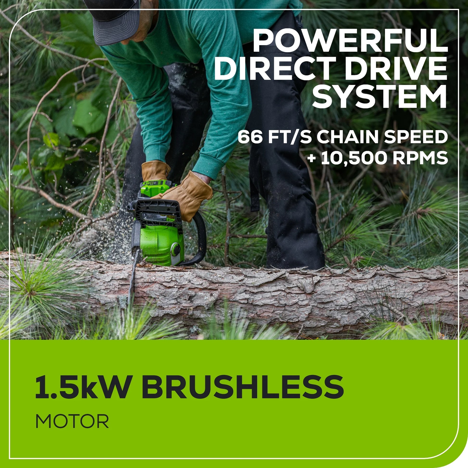 Greenworks 60V 16" 1.5kW Brushless Chainsaw with 2.5 Ah Battery & 3 Amp Charger + Bonus Chain