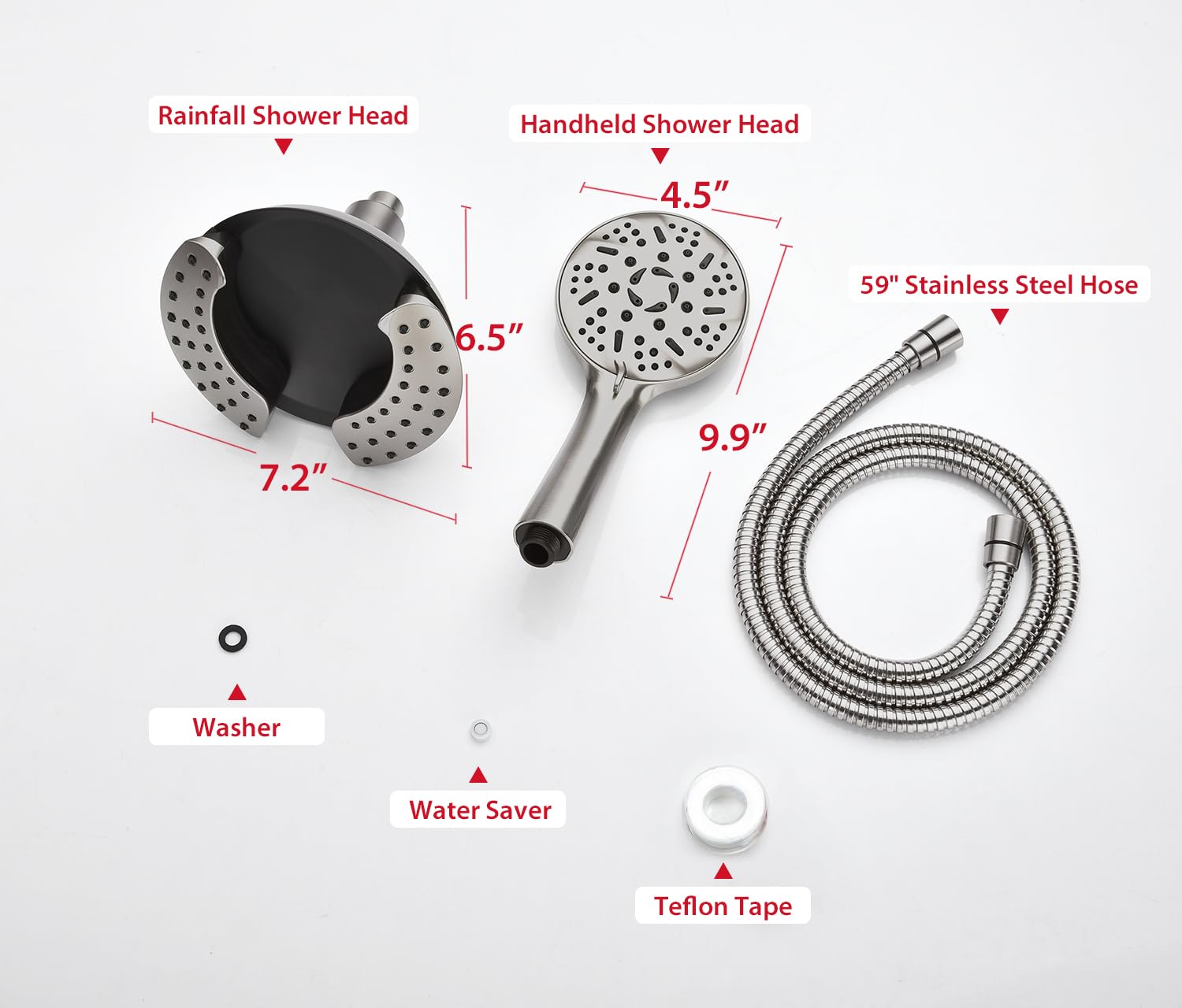 GRICH 2.5GPM Shower Head with Hand: 2 in 1 High Pressure Shower Heads With Handheld Spray Combo & Rain Shower Head, 9 Spray Modes Anti-Leak Waterfall Showerhead, Angle Adjustable, Brushed Nickel