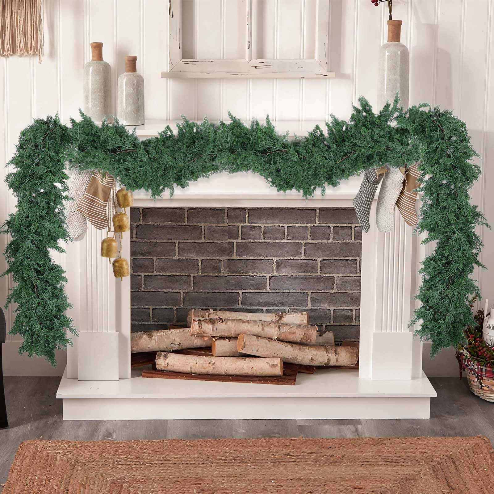 Hananona 9 FT Artificial Cedar Garlands, Real Touch Winter Cedar Pine Garland, Green Artificial Greenery Garland for Table, Mantle, Wall, Indoor, Outdoor Christmas Decorations (1, 9 FT)