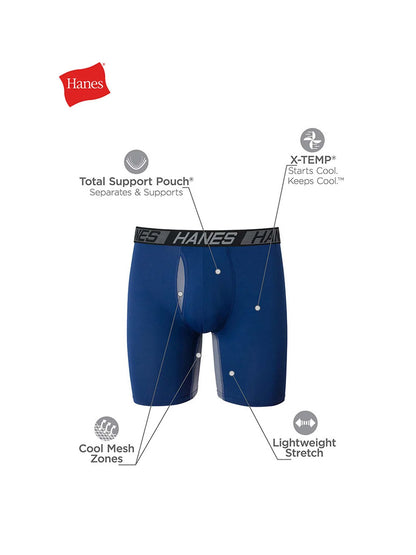 Hanes X-Temp Total Support Pouch Men's Long Leg Boxer Briefs, Anti-Chafing Underwear, 3-Pack