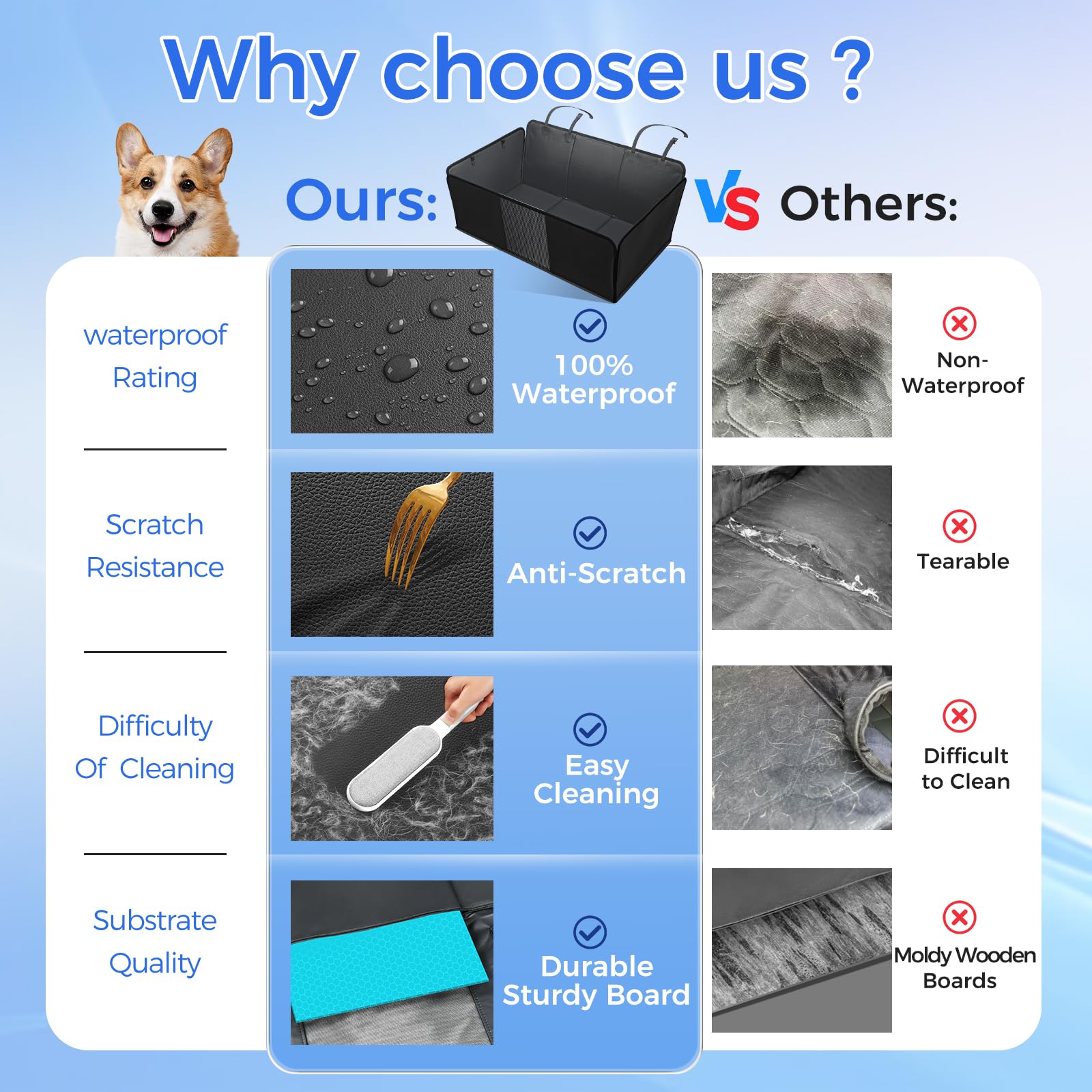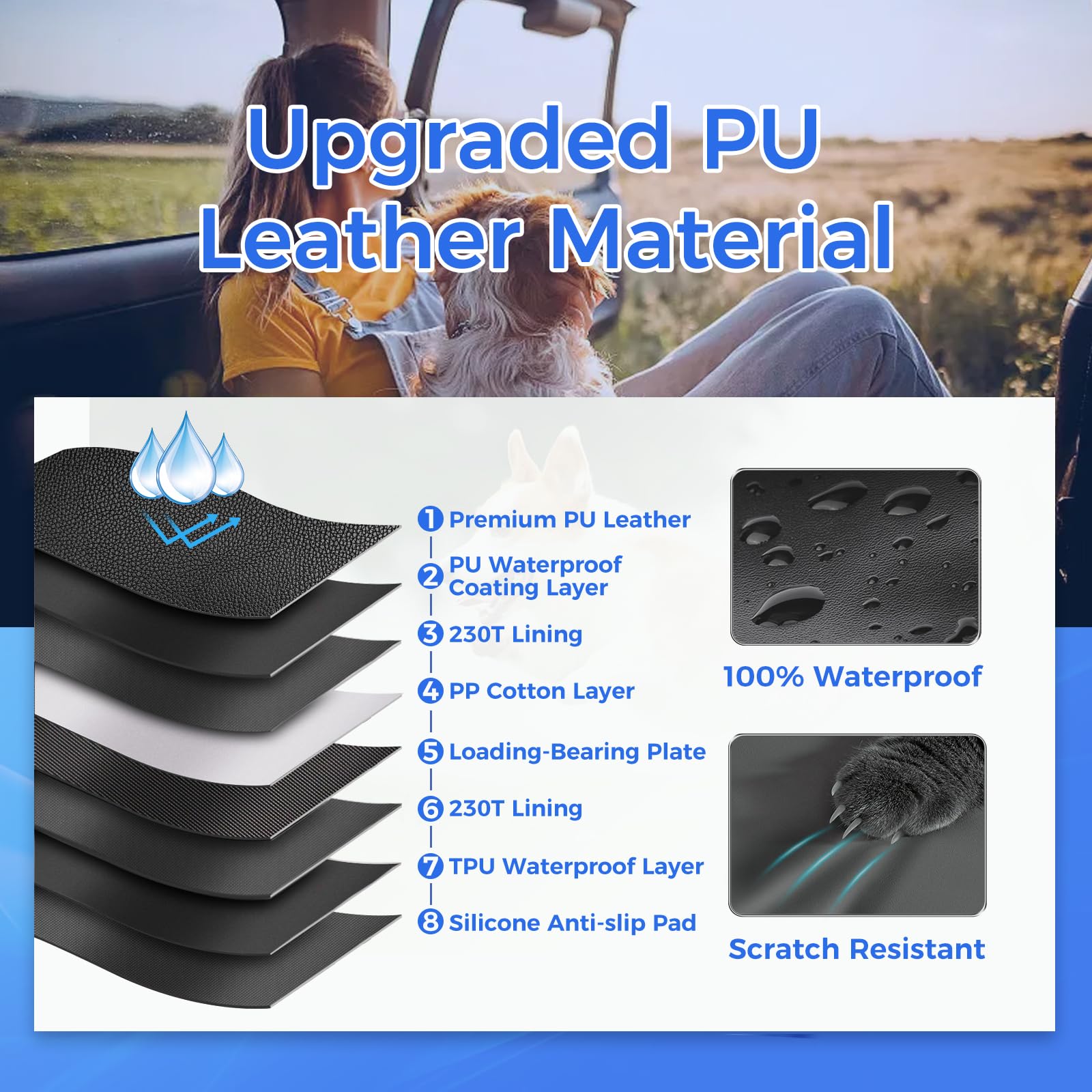 HOB4U Back Seat Extender for Dogs, Hard Bottom Dog Car Seat Cover for Truck Back Seat, Upgraded PU Leather Dog Hammock for Car, Waterproof, Anti Scratch, Larger Space, Holds 400lbs
