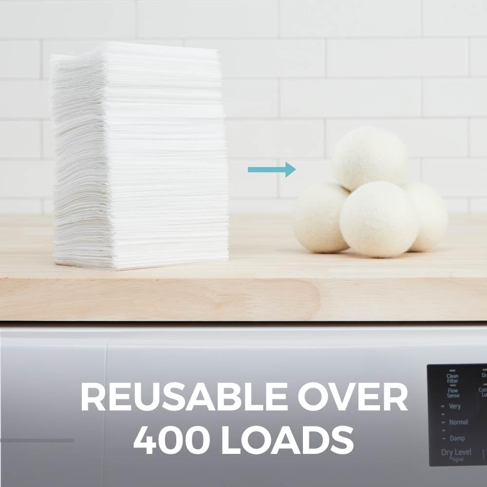 HOME GENIE Wool Reusable Dryer Balls XL, Anti Static Fast Drying Laundry for Pet Hair, Reduces Clothing Wrinkles, Lint, Natural Fabric Softener Essentials, Replace Dryer Sheets, Over 400 Loads 4 Pack