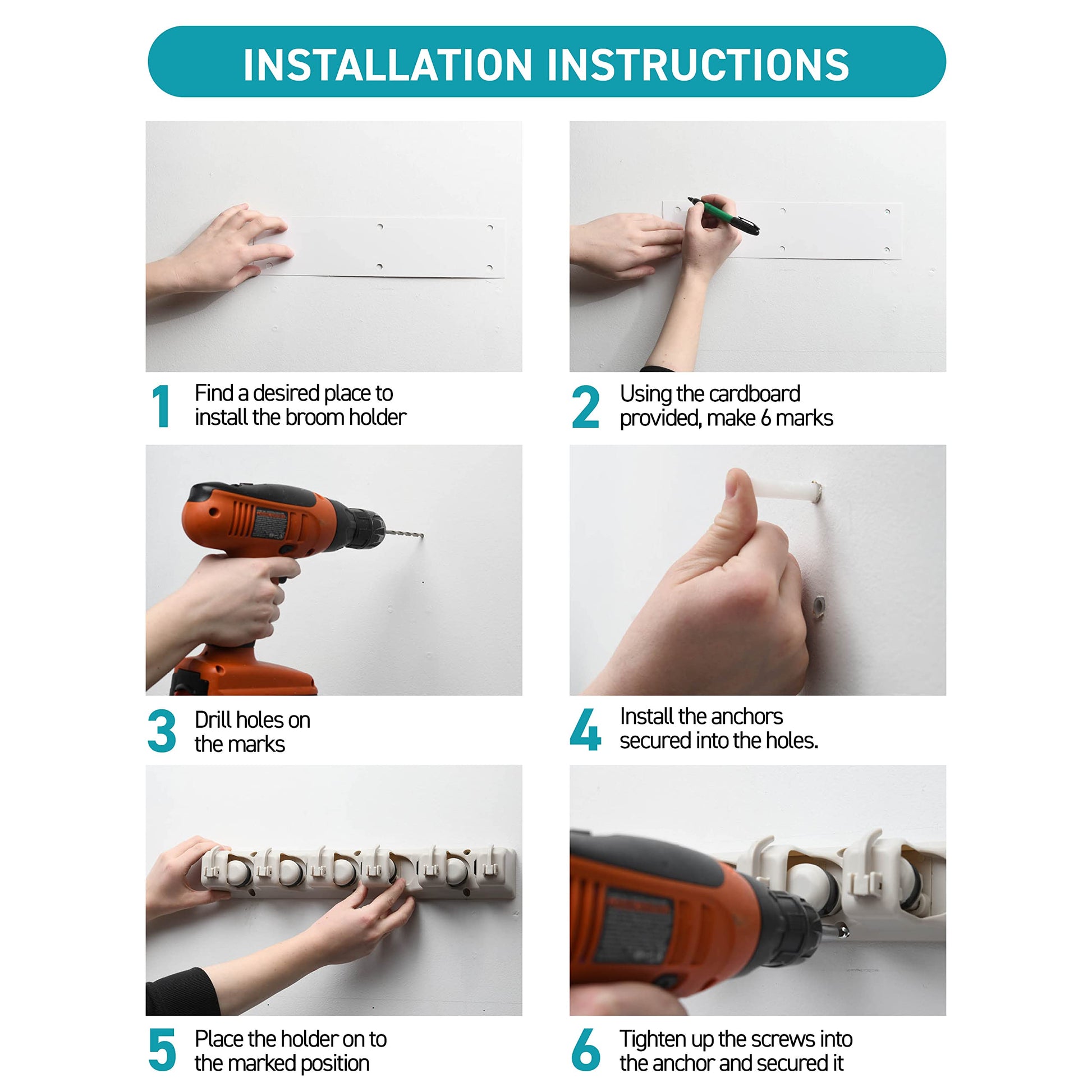 Home-it Mop and Broom Holder Wall Mount Garden Tool Storage Tool Rack Storage & Organization for the Home Plastic Hanger for Closet Garage Organizer (5-position)