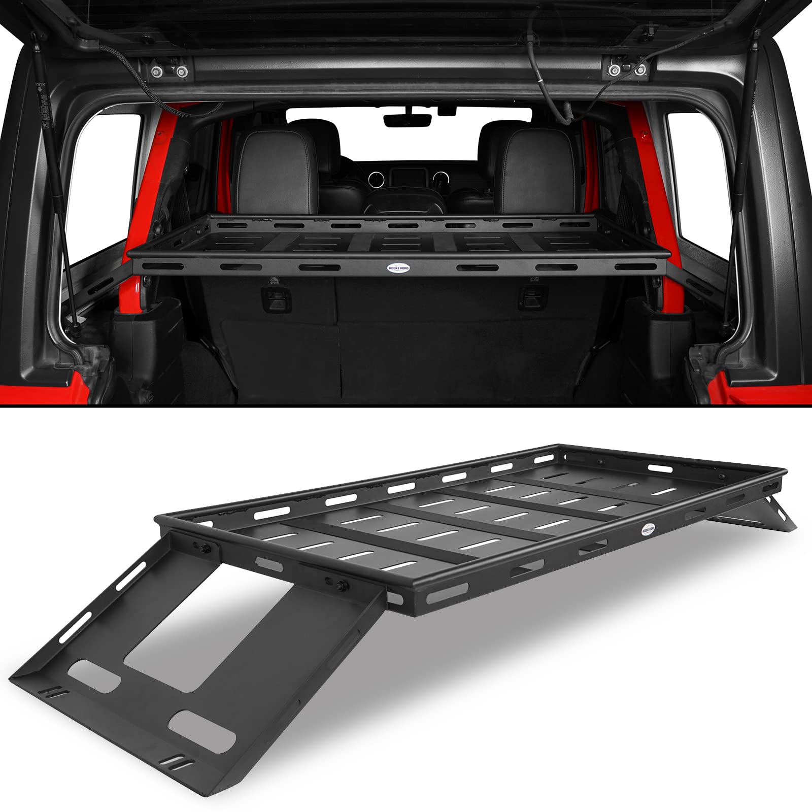 Hooke Road Rear Trunk Cargo Rack Basket Tray for 2007-2025 Jeep Wrangler JK JL 4-Door Hardtops, Sturdy Steel Shelf for Camping Trip Gear