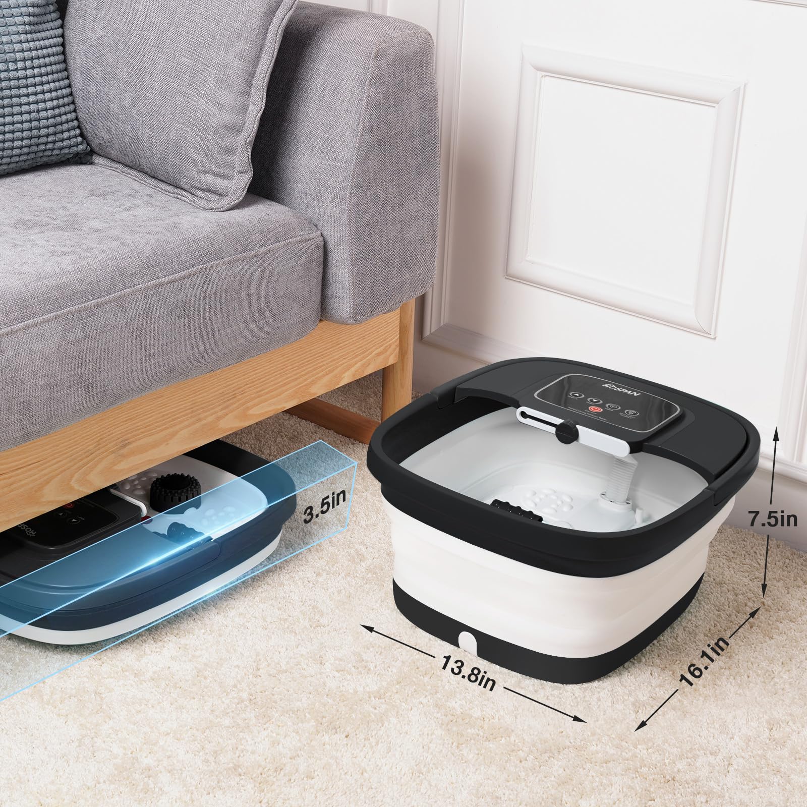 HOSPAN Collapsible Foot Spa with Heat, Bubble, Red Light, and Temperature Control, Foot Bath Massager with 8 Shiatsu Massage Rollers, Pedicure Foot Spa for Relaxation and Stress Relief, Black