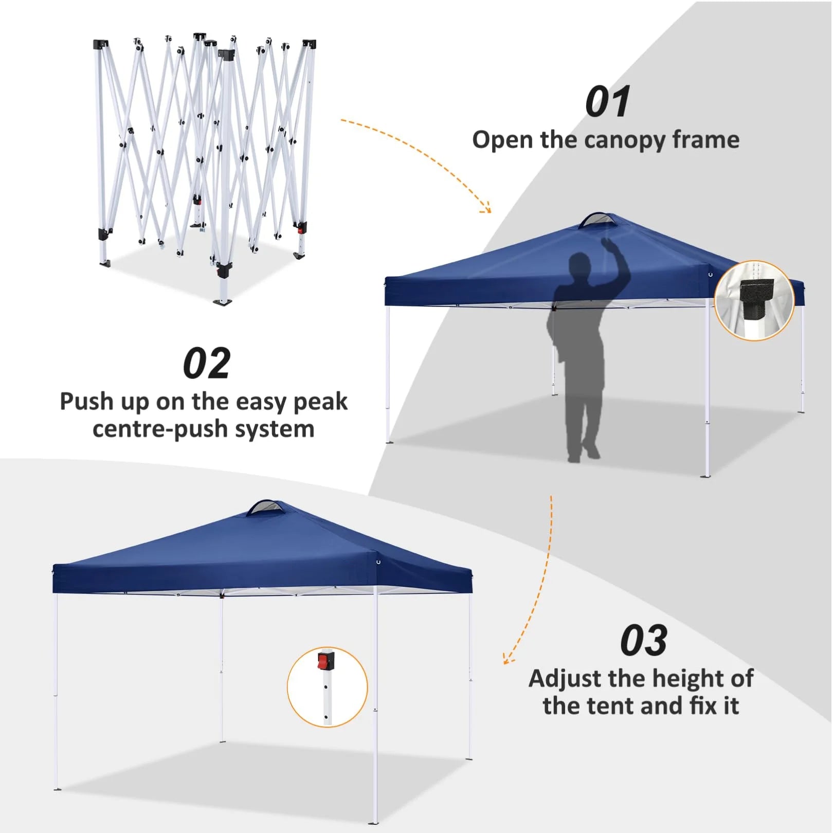 HOTEEL Canopy 10x10 Waterproof Pop up Canopy Tent with 4 Sidewalls Outdoor Event Shelter Tent for Parties Sun Shade Party Commercial Canopy with Air Vent & Carry Bag, Dark Blue