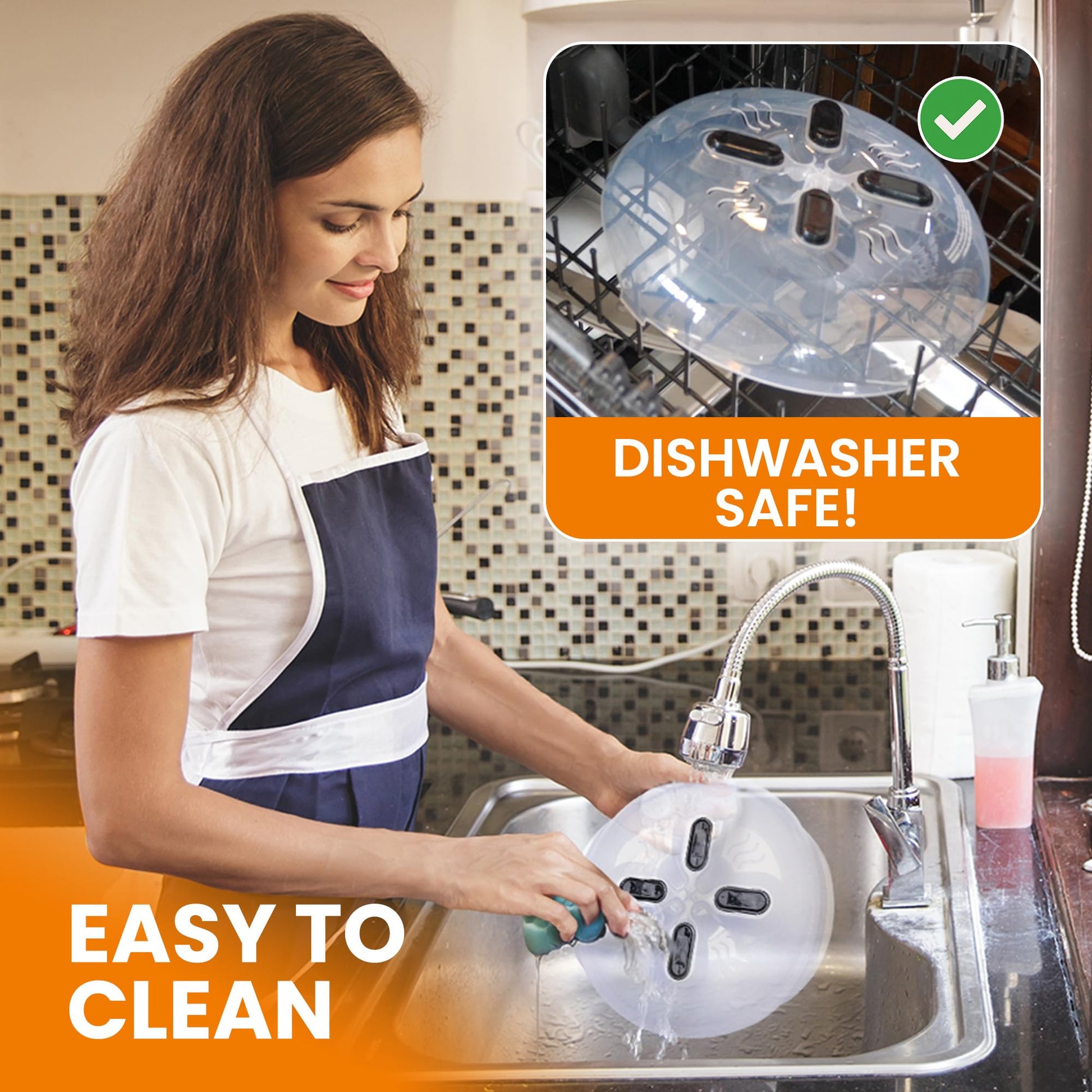 HOVER COVER Magnetic Splatter Cover, 12-Inch Clear BPA-Free Food Lid, Vented Plate Guard with Steam Vents, Anti-Splash Microwave Lid, Dishwasher Safe, Space-Saving Magnetic Storage - Onyx Black