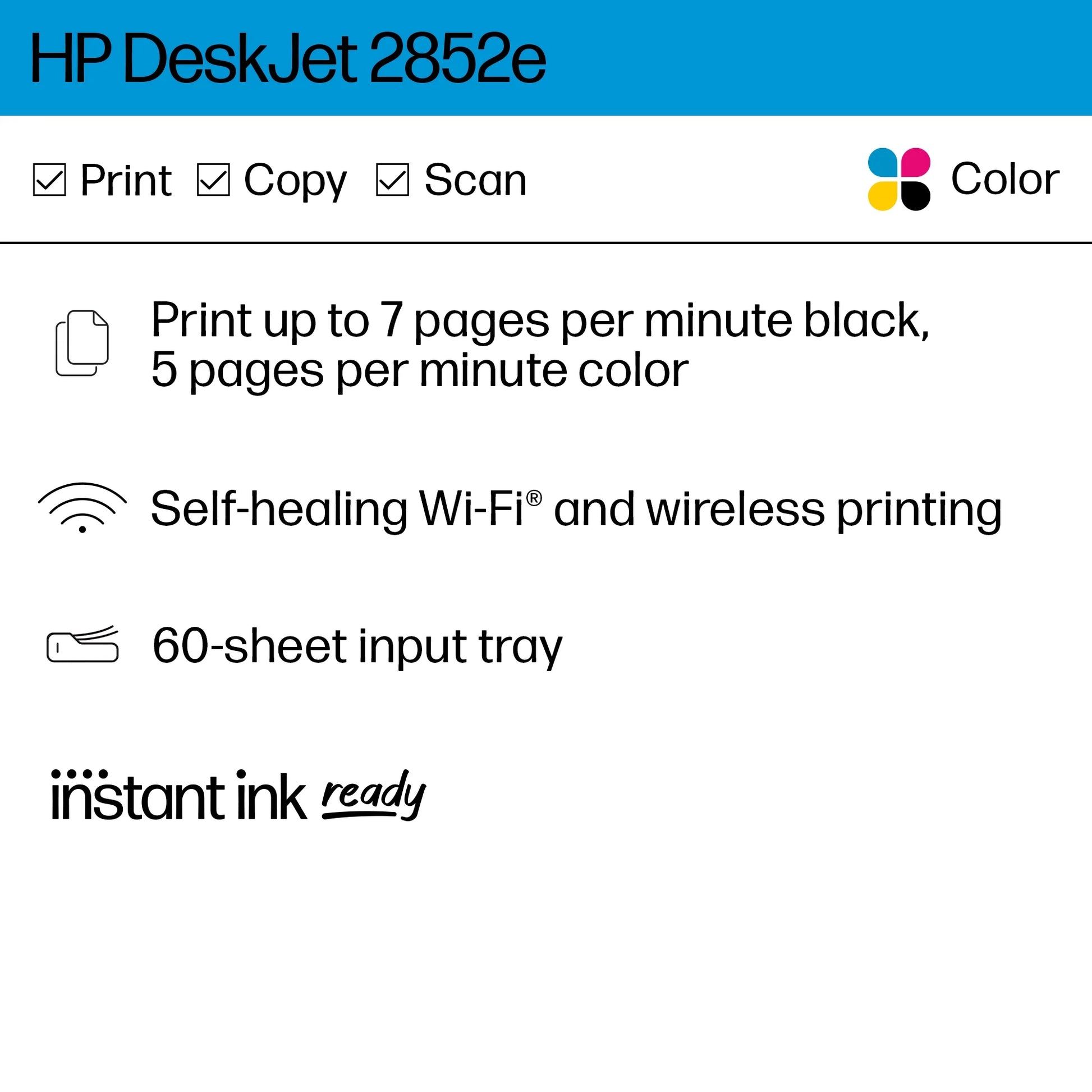 HP DeskJet 2852e Wireless All-in-One Color Inkjet Printer, Scanner, Copier, 3 Months Free Ink