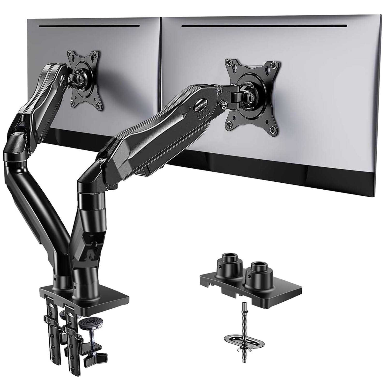 HUANUO Dual Monitor Stand, Fully Adjustable Monitor Desk Mount for 13–32″ Computer Screens, Full Motion VESA 75x75/100x100 with C-Clamp & Grommet Base, Each Arm Holds 4.4 to 19.8 lbs