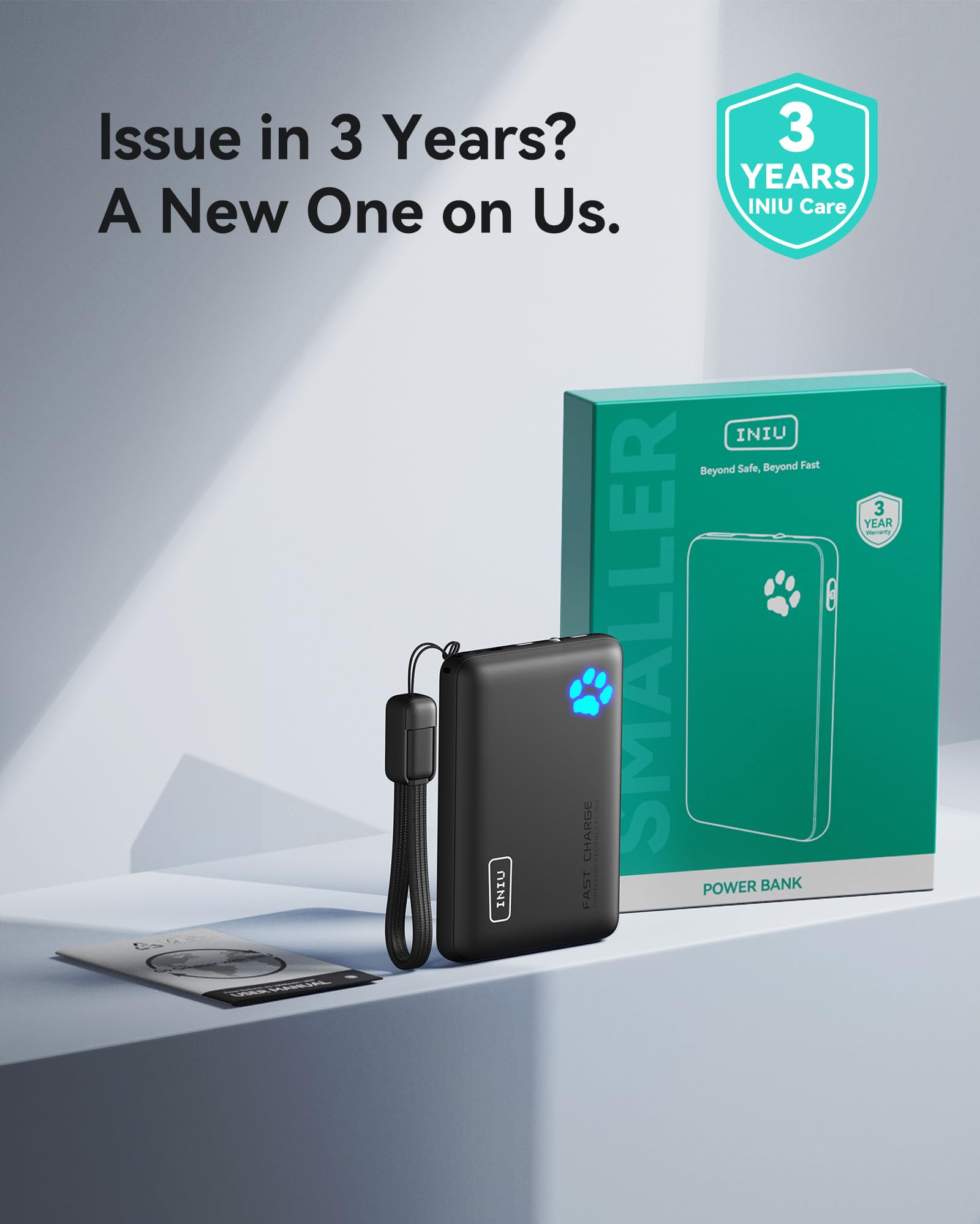 INIU Portable Charger, Ultra Slim 10000mAh 45W PD Power Bank, USB C in&Out Fast Charging Battery Pack, Travel Essential Phone Powerbank Compatible with iPhone 17 16 15 Samsung S22 S21 Google iPad etc