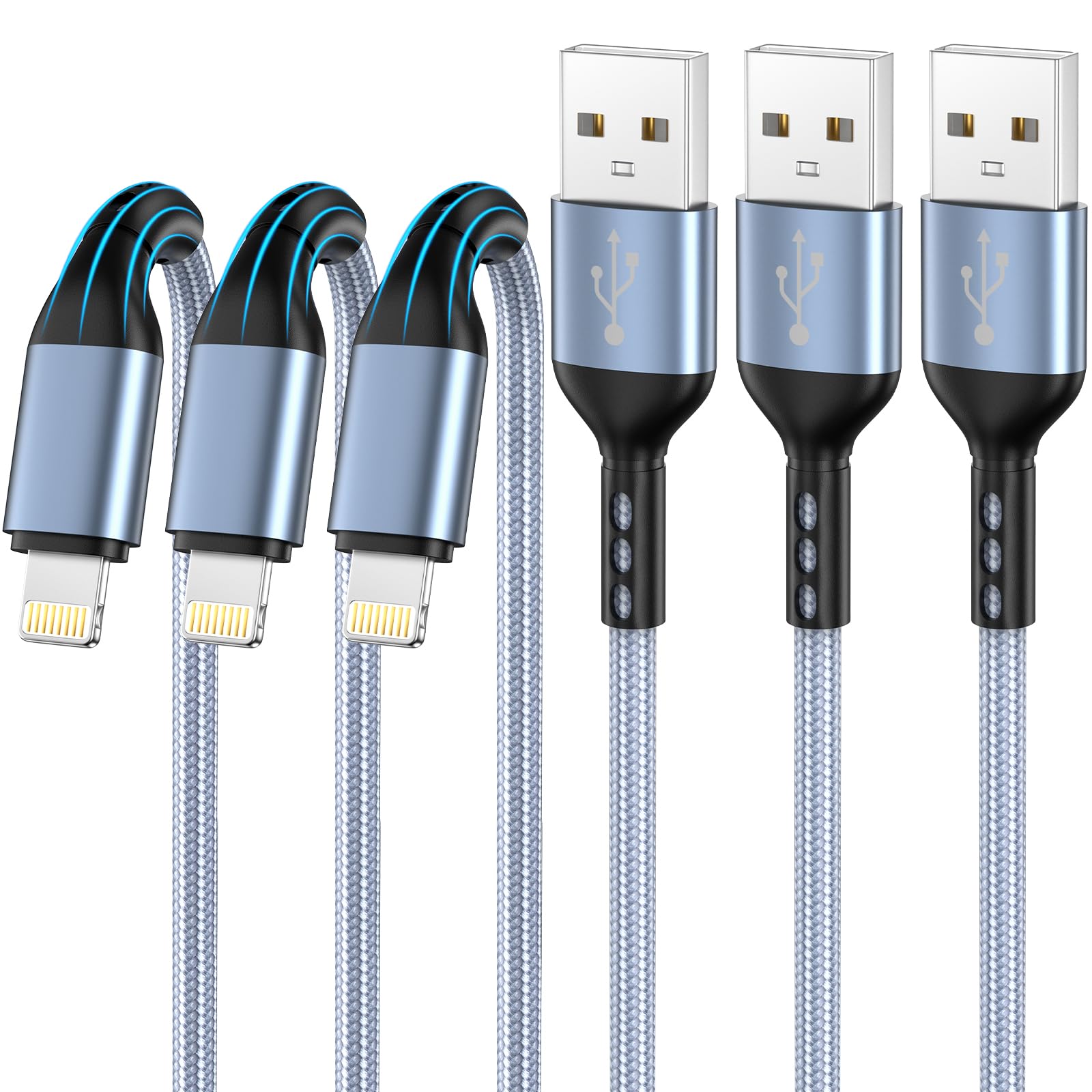 iPhone Charger 3pack 10FT Apple MFi Certified Nylon Braided Lightning Cable Fast Charging Long USB Charging Cable High Speed Transfer Cord for iPhone 14 13/12/11 Pro Max/XS MAX/XR/XS/X/8/7/Plus/6S