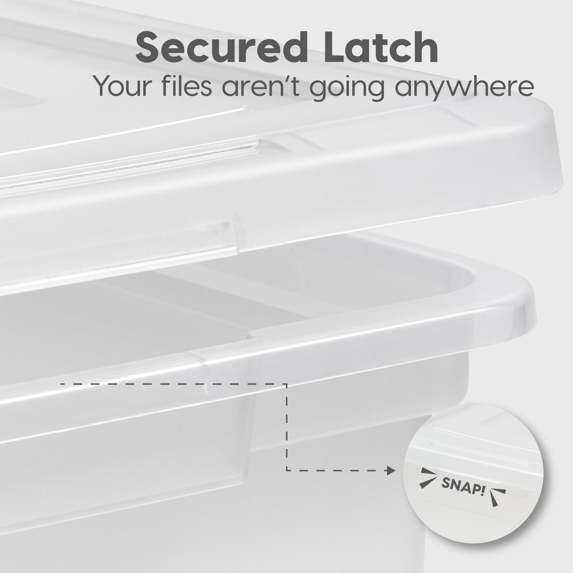 IRIS USA File Box, Plastic File Organizer with Lids for Letter/Legal File, Portable Document Box For Moving, Storage Bin with Durable and Secure Lid, Stackable Nestable BPA-Free, Clear 35 Qt. 4 Pack
