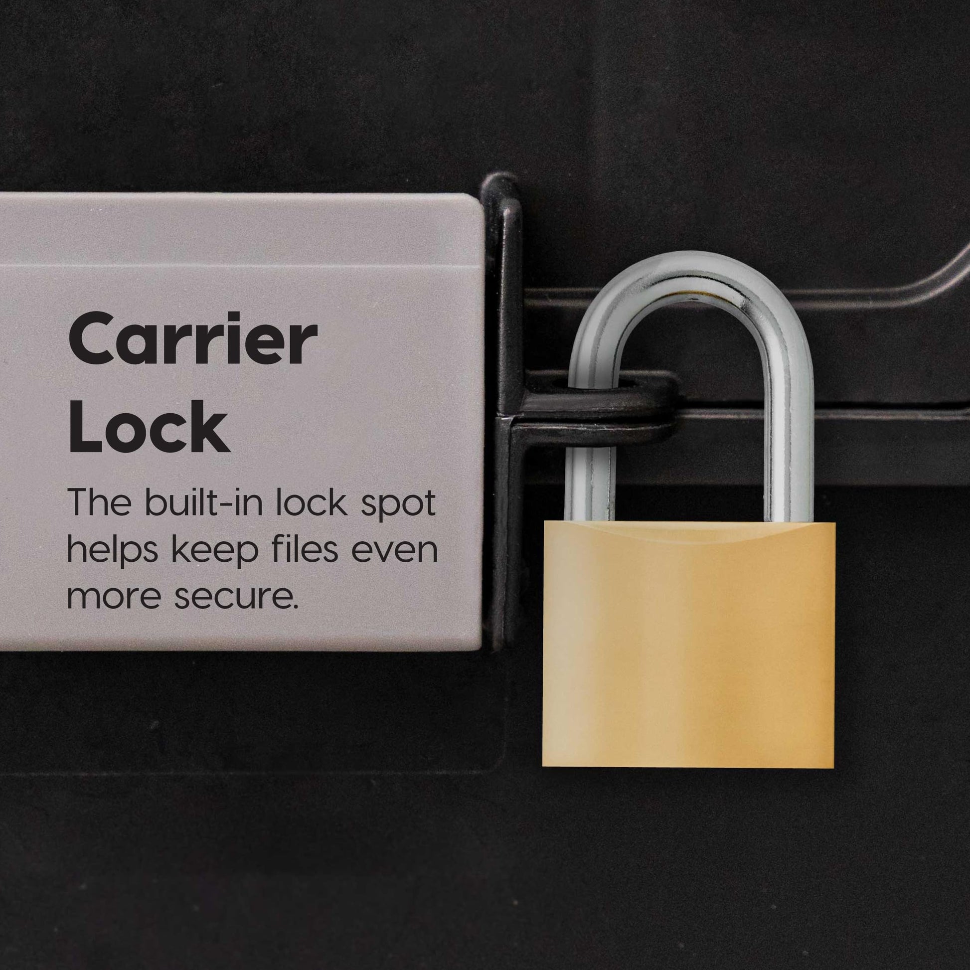 IRIS USA File Box with Lid File Organizer for Letter File w/ Organizer-Lid, Plastic Mobile Filing Organizer, Water Resistant Document Box, Portable File Box with Handle, Secure Buckle, Lockable, Black