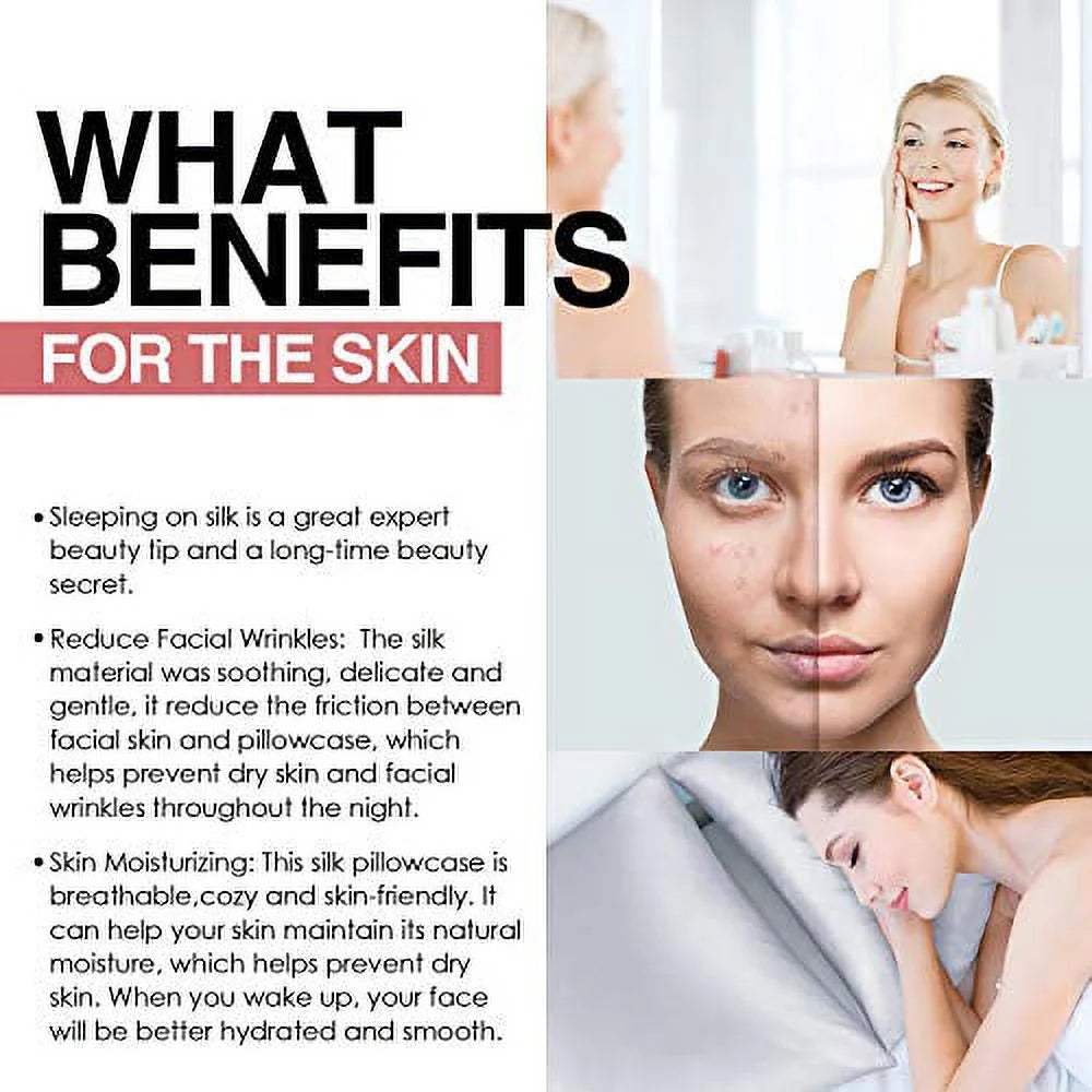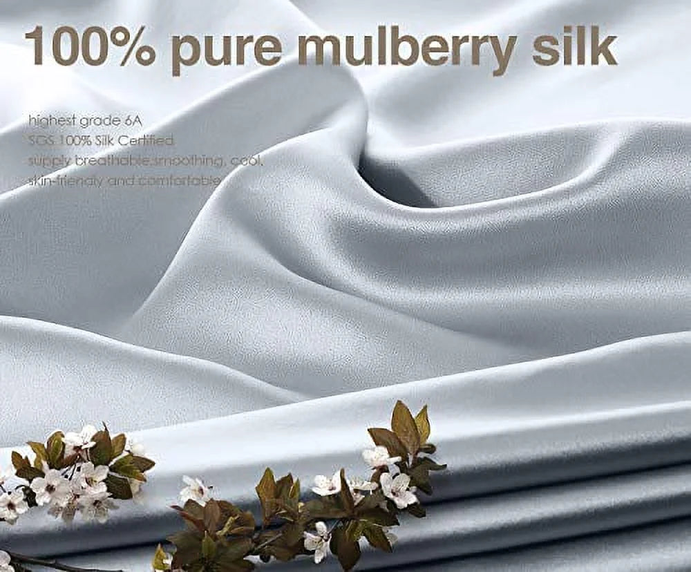 J JIMOO 100% Mulberry Silk Pillowcase for Hair and Skin, Both Sides 19 Momme Pure Natural Silk Pillowcases Soft Breathable Standard 20''×26'', Silver Grey 1 Pack