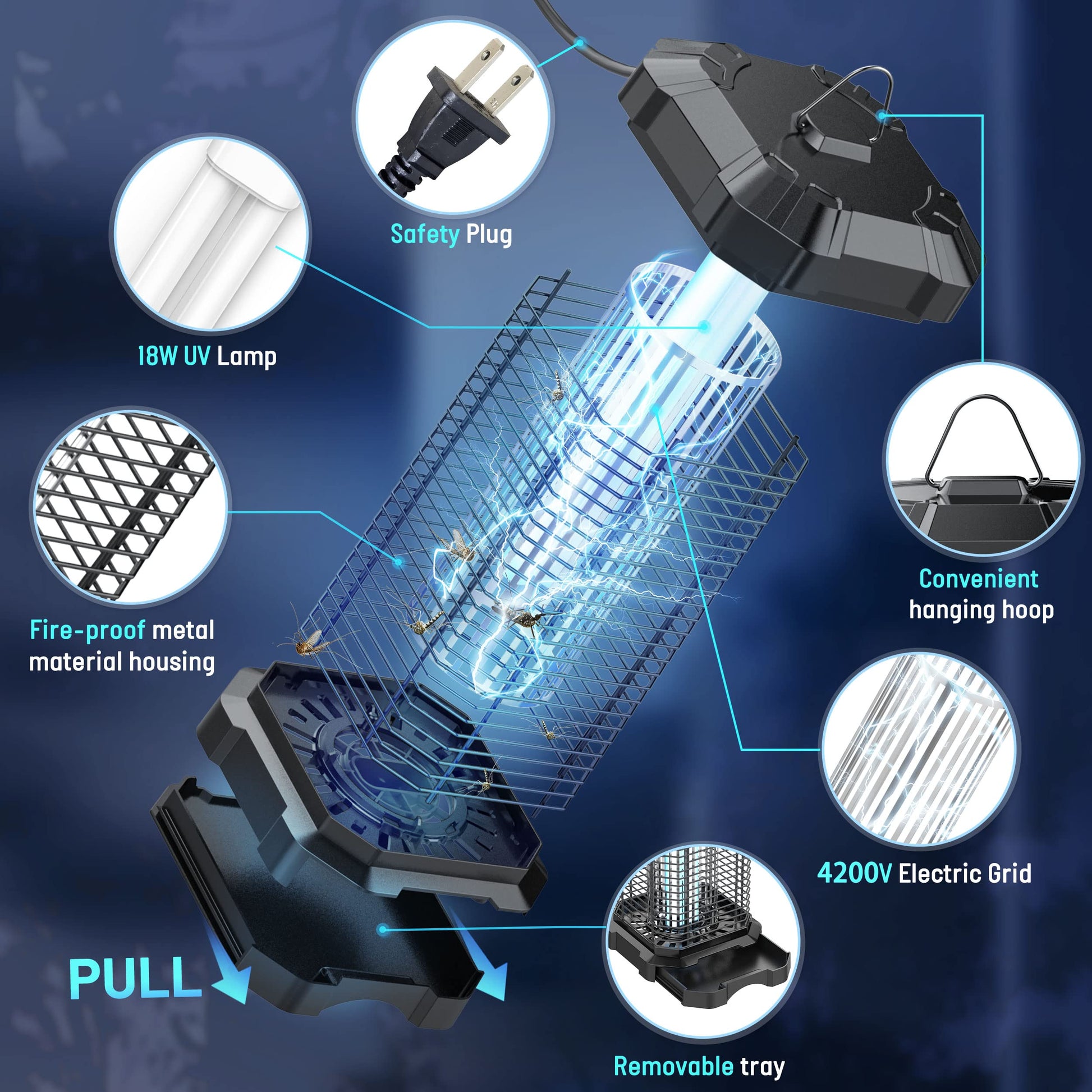 Jawlark Bug Zapper Outdoor, 4200V Electric Mosquito Zapper Indoor, Insect Fly Zapper Waterproof with 5ft Power Cord, Mosquito Killer for Home, Patio, Kitchen, Backyard, Camping, Plug-in