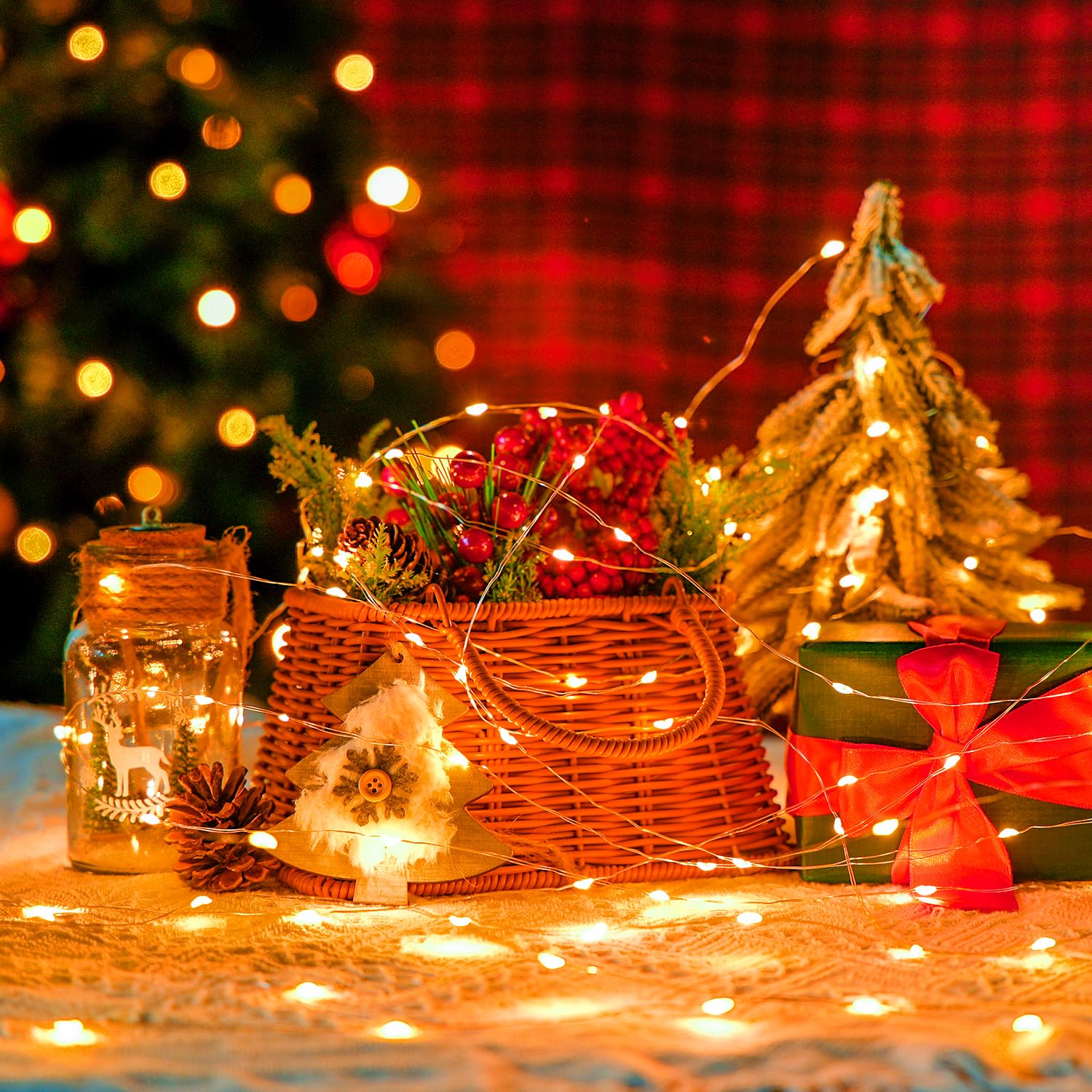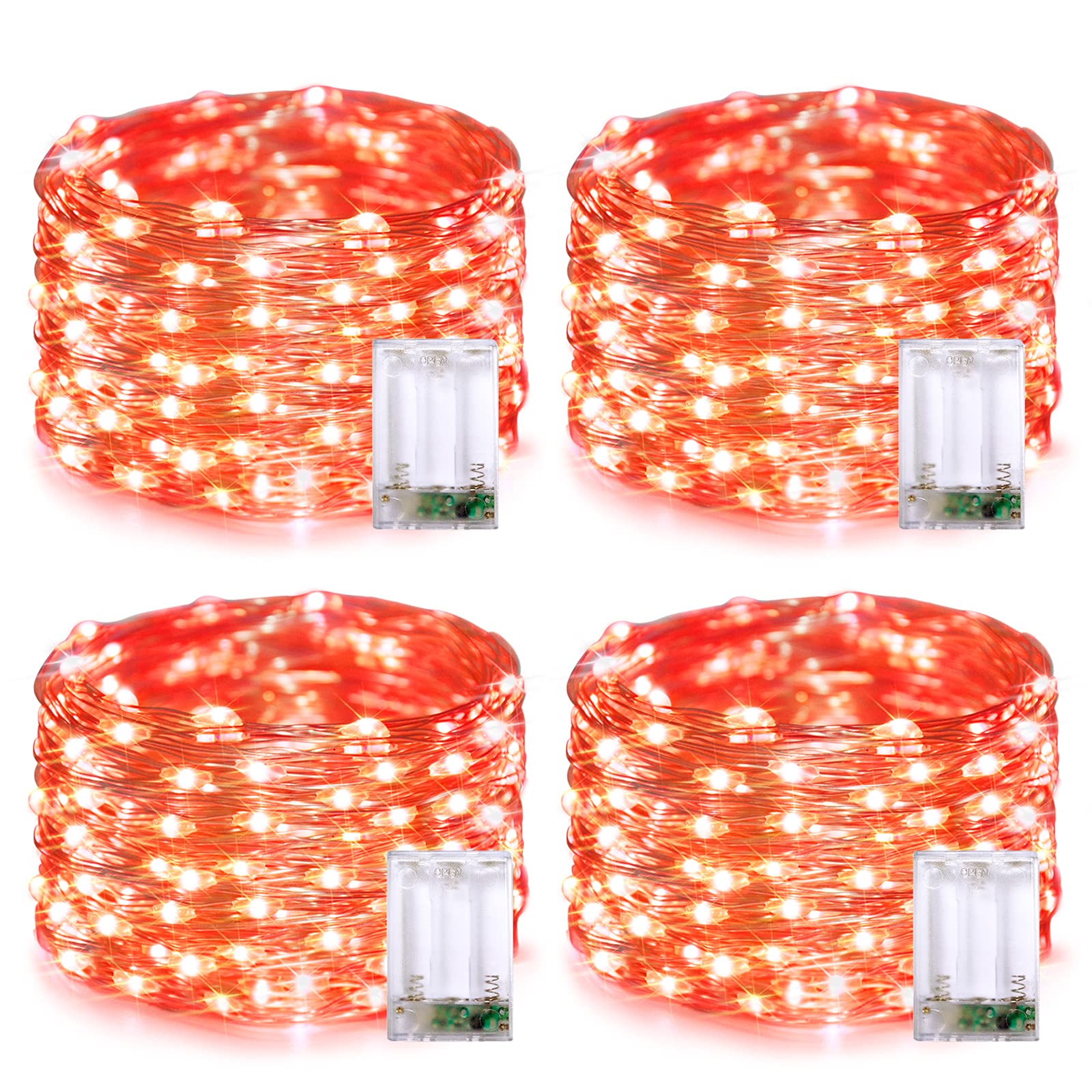 JMEXSUSS 4 Pack 50 LED Halloween Fairy Lights Battery Operated, 16.1ft Orange Fairy String Lights, Mini Orange Halloween Lights for Bedroom Garden Party Holiday Decorations