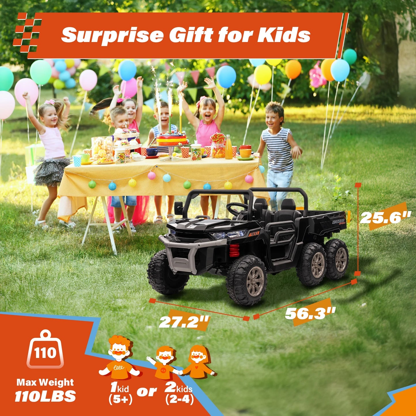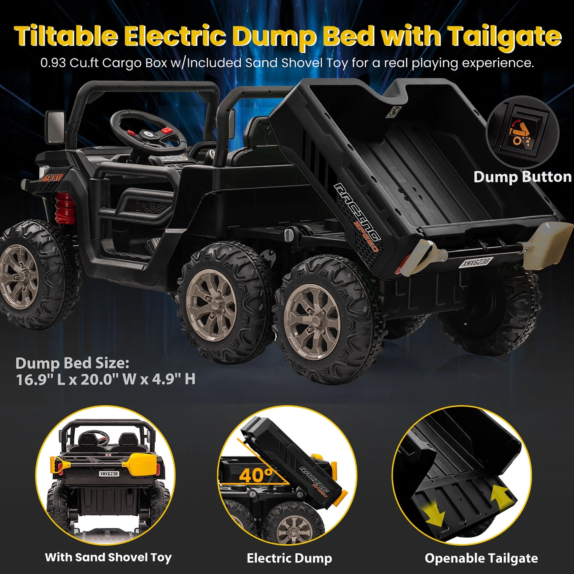 Joyracer 24V Ride on Toys, 2 Seater 6-Wheel UTV Car, 4WD Ride on Dump Truck for Big Kids with Trailer Remote Control, Black