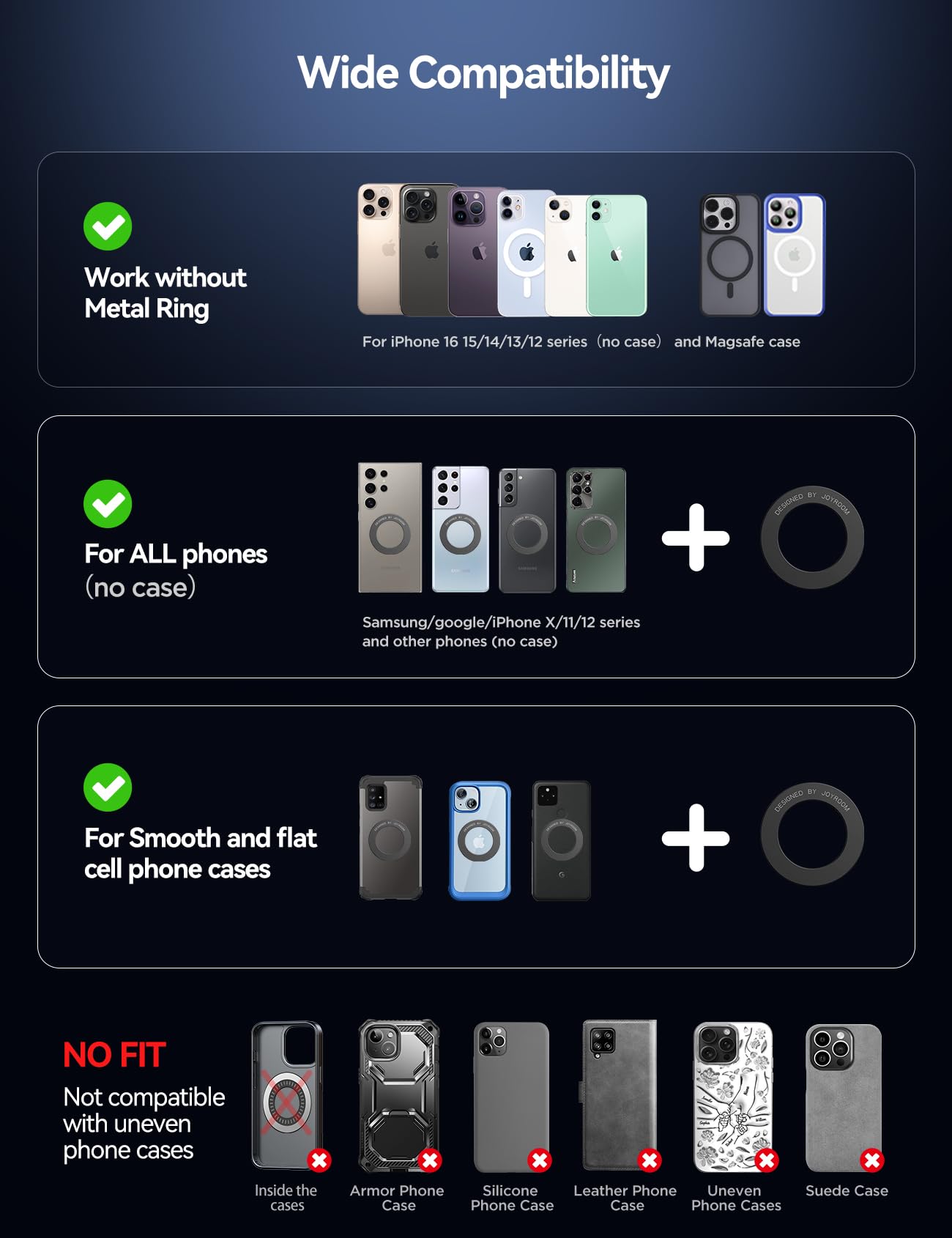 JOYROOM Magsafe Car Mount, Car Mount for iPhone with Strong Magnet, 360° Metal Strut Vacuum Suction Cup Phone Mount for iPhone 17 Air Pro Max/16 15 14 13 12 Series& Android Magsafe Case, Dark Blue