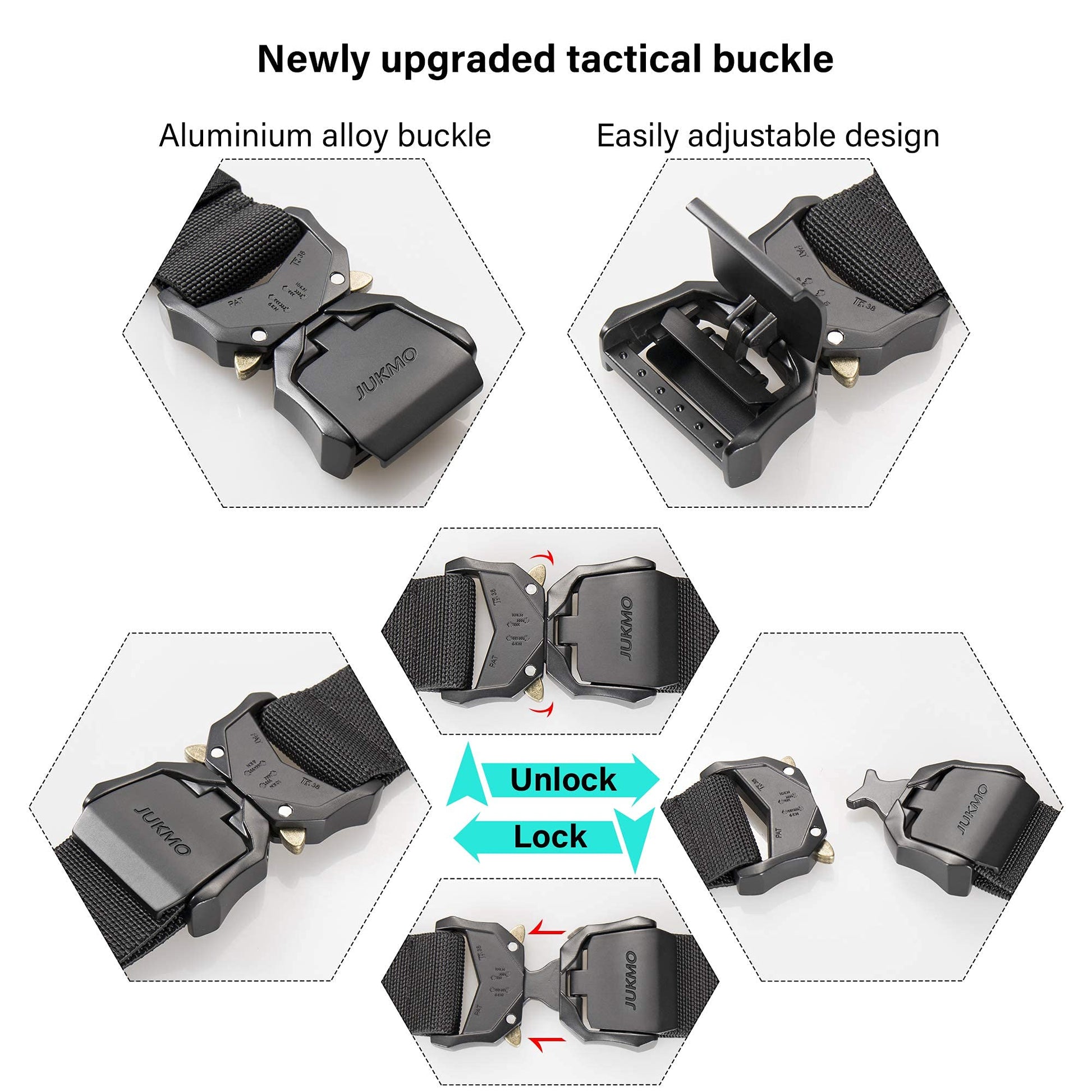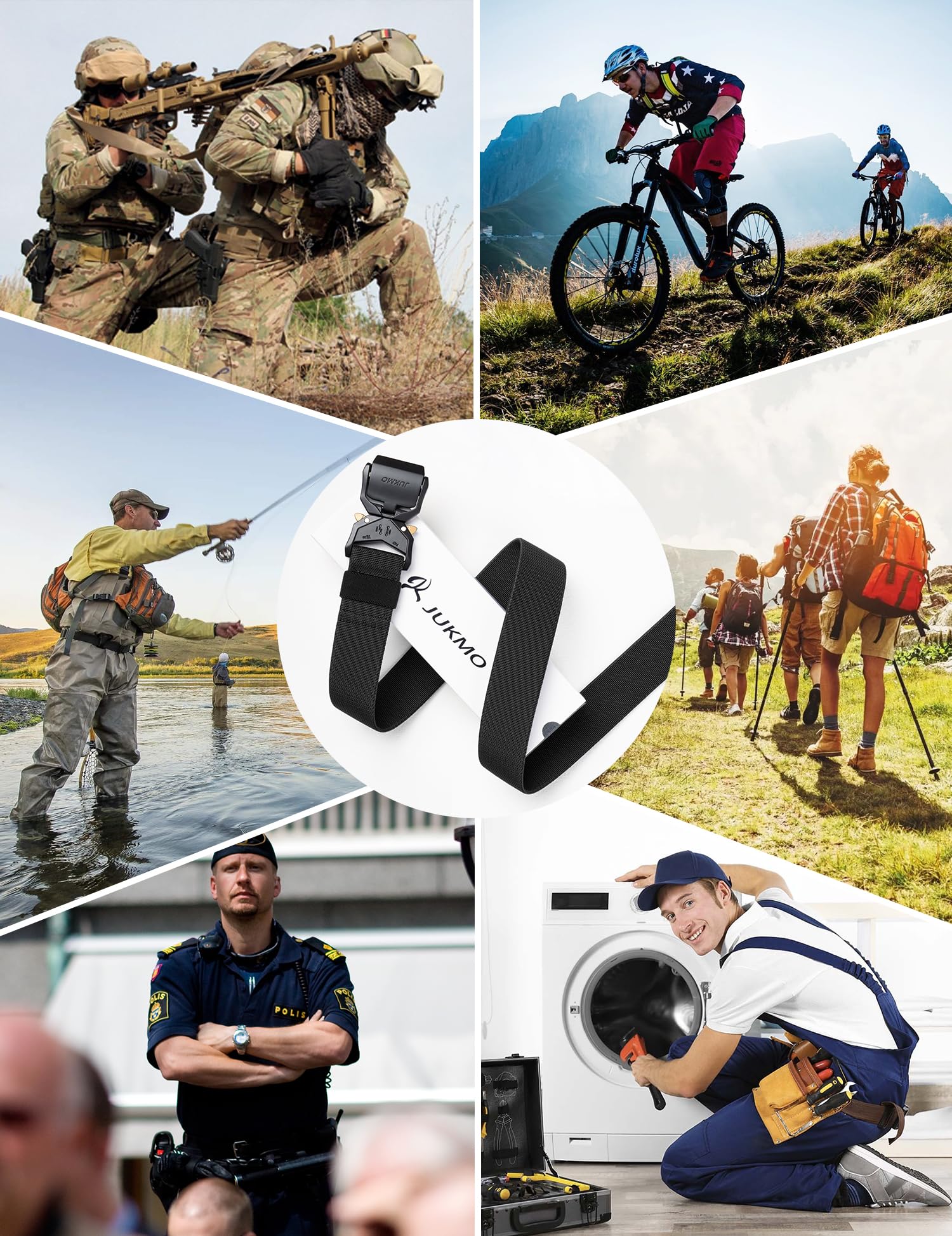 JUKMO Tactical Belt, Military Hiking Rigger 1.5" Nylon Web Work Belt with Heavy Duty Quick Release Buckle (Black, Medium)