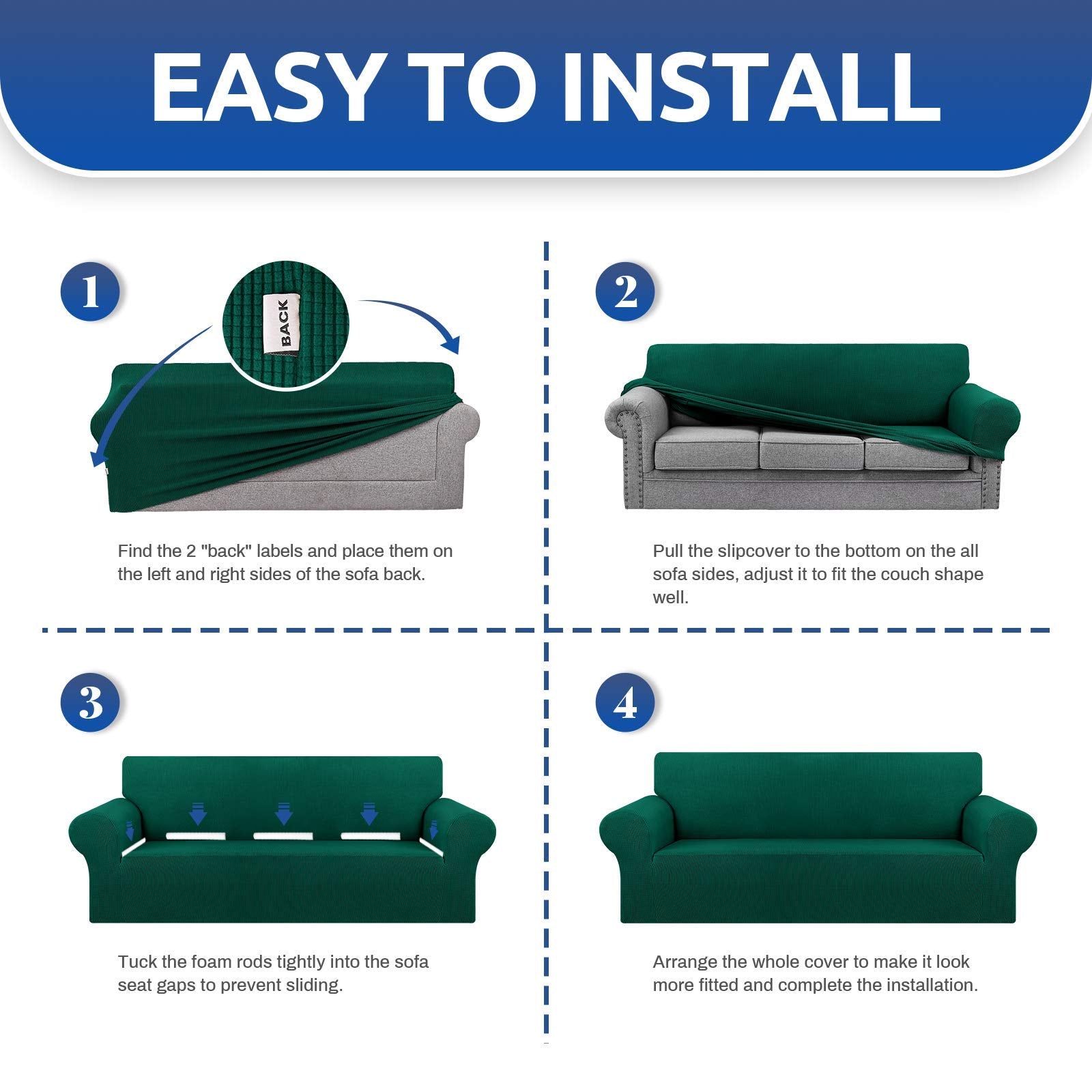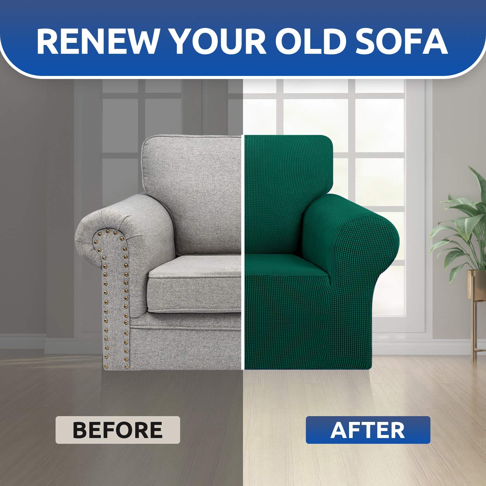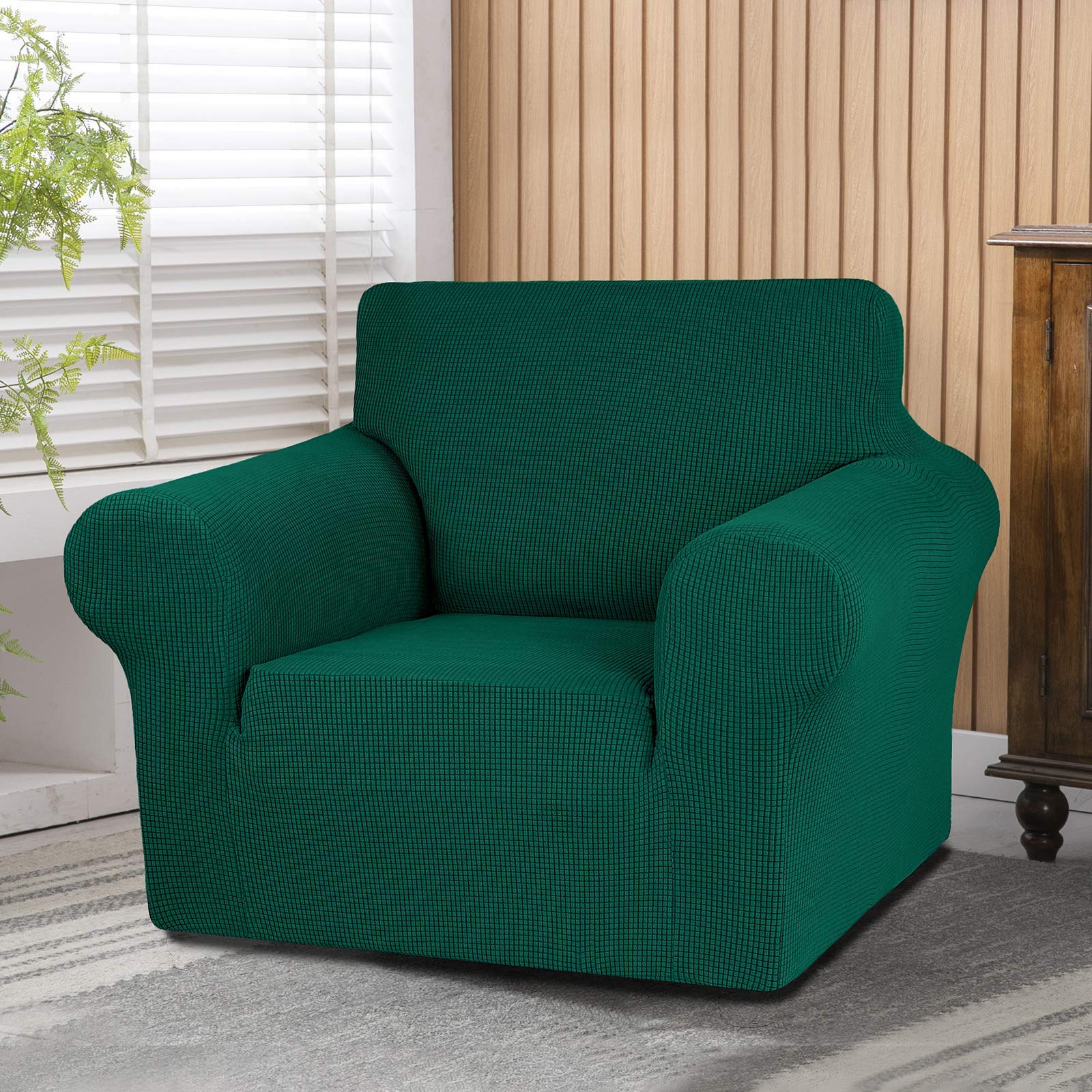 KEKUOU Stretch Single Sofa Slipcover 1 Piece Couch Sofa Cover (32"-55") Furniture Protector 1 Seater Sofa with Elastic Bottom for Kids,Pet.Jacquard Small Checked Pattern Fabric(Small,Hunter)